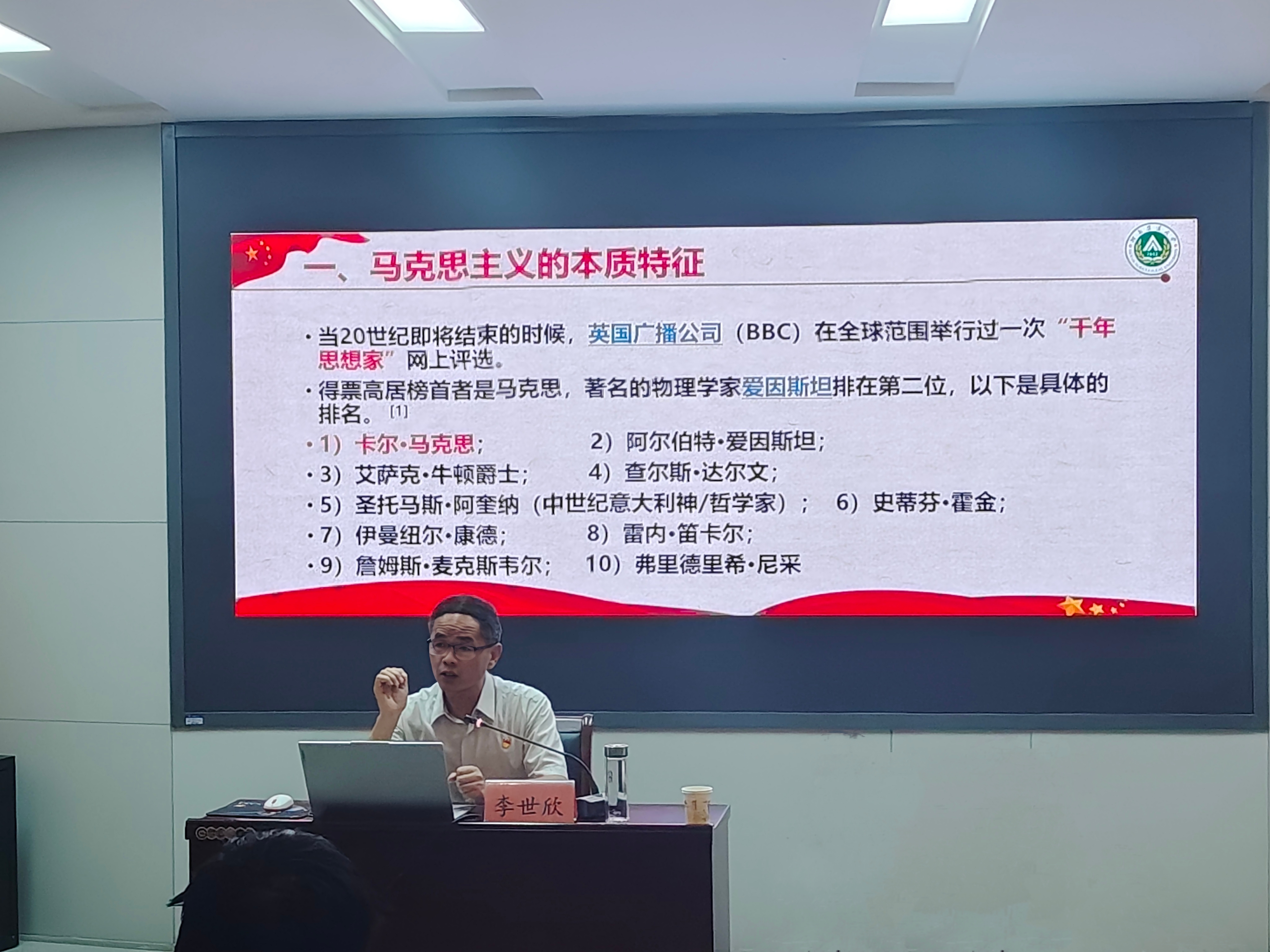 毕业生党员们的在校表现给予了充分肯定并为他们送上了美好祝愿。接着,李世欣向毕业生党员们介绍了马克思主义的鲜明特征,并指出这是中国共产党的精神之源。李世欣从中共“一大“代表们的不同人生结局带领毕业生党员感悟信念的力量;通过毛泽东主席和习近平总书记的初心使命和精神境界,教导大家要坚定理想信念,全心全意为人民服务,为实现中华民族伟大复兴而不懈奋斗。最后,李世欣对毕业生党员们提出了殷切期望,希望同学们要坚定理想信念,树立远大志向,加强品德修养,坚持读书学习,保持身心健康,在实现中国梦的生动实践中放飞青春梦想。
