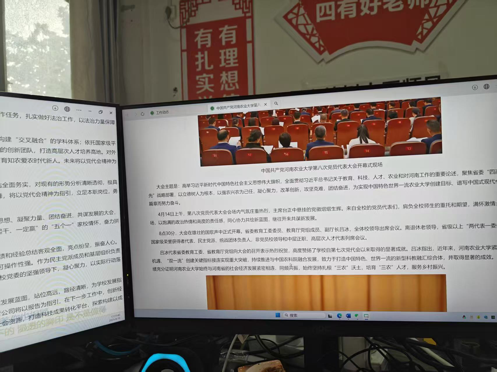 中共河南农业大学第八次党代会的胜利召开,如一座灯塔,为学校的前行照亮了航道。身处这一关键的发展节点,此次会议意义深远,承载着全校师生的殷切期盼。会议提出的“三步走”战略构想、“三大发展共识”与未来五年指导思想,高屋建瓴又切实可行,让我们对学校未来充满憧憬。作为学生党员,我深感重任在肩。学习中,以党代会精神为指引,提升专业素养,积极参与学术研讨与实践活动,锻炼解决实际问题的能力。生活里,发挥模范作用,传播党代会精神,带动同学共同进步。还会参与学校组织的志愿服务,将专业知识用于乡村振兴实践,为地方发展出力。