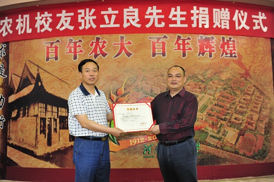 张立良表示,非常感谢母校的培养,在喜迎母校百年校庆之际,设立10万元的发展基金,旨在支持创新人才培养模式和鼓励品质优秀、家庭贫困、积极上进的大学生,希望能够通过设立发展基金为母校和学院事业发展贡献力量。
