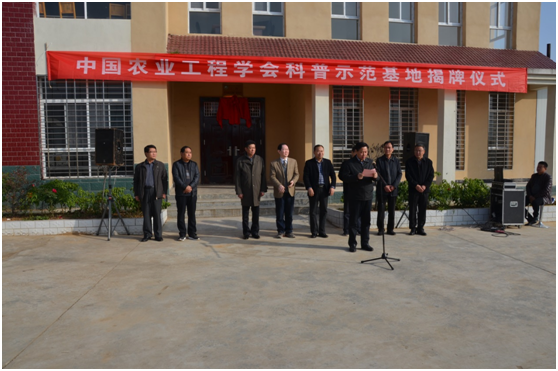 院长、河南省农业工程学会秘书长徐广印教授在仪式上进行了致辞。他指出,河南农业大学与西峡县农业局在中国农业工程学会的领导下,相互协作、资源共享、优势互补,开展了生态型沼气发酵气肥联产科普基地的建设。该科普示范基地的成功建设,是河南农业大学、南阳市及西峡县相关领导、科研人员和工作人员共同努力的结果。中国农业工程学会科普示范基地的挂牌成立,一定会成为农业现代化建设与可再生能源卓越人才的培养基地、可再生能源与生态农业科技创新的依托基地、可再生能源与生态农业高新技术的孵化基地、农业现代化建设与可再生能源产业发展战略的研究基地。