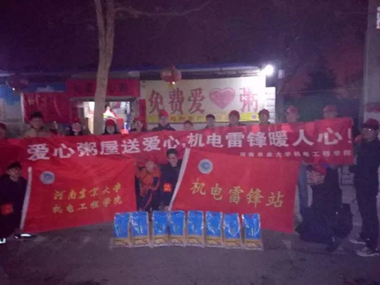 自愿者组织,是秉承雷锋精神的践行者。是日,在机电学院团委老师的带领下,凌晨五点便来到了爱心粥屋。机电学院雷锋站的同学们到达爱心粥屋之后就迅速进入状态,开始搬排桌椅,打扫卫生,为发粥做准备。随后,大家以合唱“学习雷锋好榜样”来表达热情,以宣誓方式表达决心,在场就餐的人们被同学们的拳拳志愿精神面貌所打动,纷纷报以热烈的掌声。简单而隆重的志愿仪式之后,同学们开始帮忙分发米粥和馒头,这些米粥和馒头浓缩了每个志愿者的爱心,同学们热情洋溢的将爱心传递到每个人手中。环卫工人吃饭过后,帮忙打扫卫生,收拾桌椅,洗刷碗筷,为此次两个小时的志愿服务活动做收尾工作。