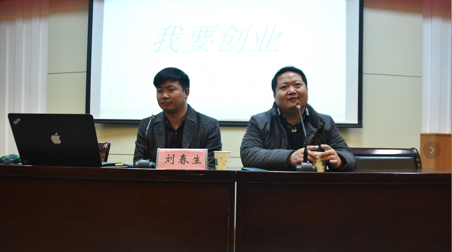 团委书记王辉主持,特别邀请我校优秀毕业生、河南绿安建材有限公司董事长刘春生做报告,院团委老师徐捧丽出席会议。
