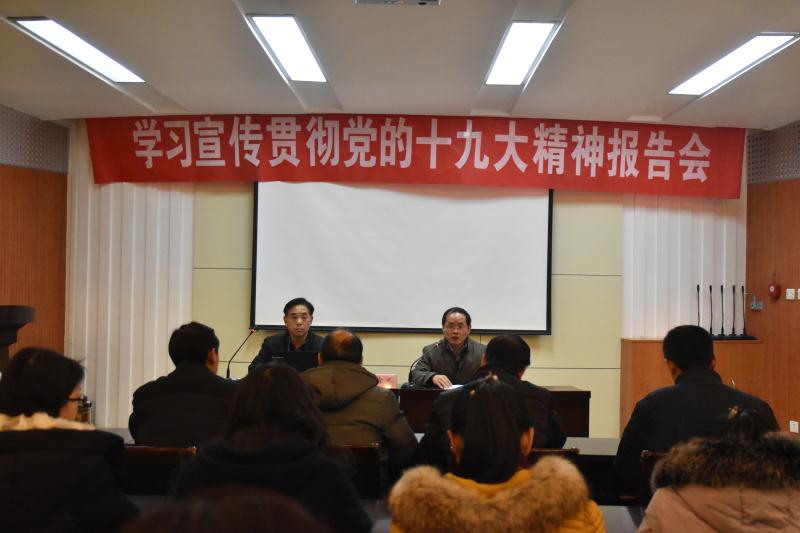 12月26日上午,校党委党的十九大精神宣讲组成员、校纪委副书记、监察处长王宾齐教授在大礼堂第三报告厅宣讲十九大精神,色情av影片 教师及其他三个单位主要负责同志和党员参加会议。宣讲会由色情av影片 党委书记李世欣主持。