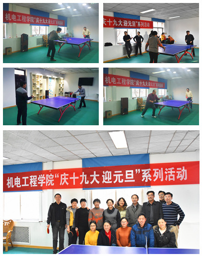工会“庆十九大 迎元旦”系列活动启动仪式暨乒乓球赛在院工会活动中心正式拉开序幕,启动仪式邀请校工会办公室主任赵亚芳、院党委书记李世欣、副院长刘淑杰出席,仪式由副书记、工会主席刘海涛主持。启动仪式结束后,进行乒乓球比赛,比赛设男子单打和女子单打两项。经过两周的激烈角逐,男教工组前七名分别为李保谦、李赫、丁攀、王振锋、王万章、胡建军、何勋,女教工组前五名分别为张秀丽、周雪花、常粉玲、孙建青、陈静。