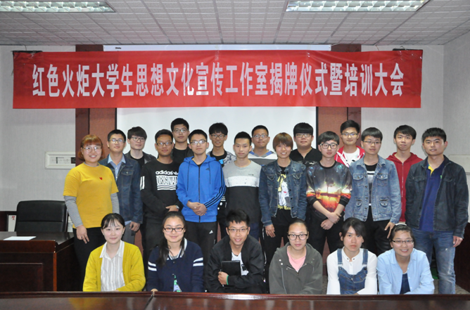 于4月25日在院办举行了红色火炬大学生思想文化宣传工作室揭牌仪式。出席本次仪式的有院党委副书记刘海涛、校新媒体与音像发展出品中心主任周红飞、院团委书记王辉和全体团委老师。此外参加此次会议的还有工作室全体成员及学生干部参加此次仪式。