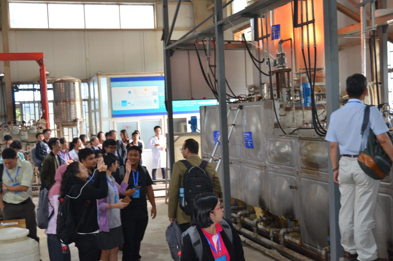 该试验装置有效容积10m3、聚光面积2.7m2、 光纤通道118个、秸秆类生物质转化率62.7%、产氢量56m3/d,为世界上最大的生物制氢装置,可实现厌氧、光合、厌氧-光合联合产氢 3 种运行模式,整体技术处于国际领先地位。参观期间,王毅博士从生物制氢反应器的设计研制、原料的预处理、生物制氢工艺优化及自动控制系统等方面,向现场的各位专家学者进行了详细介绍。来自不同国家的专家学者对该试验装置深感兴趣,纷纷咨询和交流探讨,场面热烈,并对色情av影片