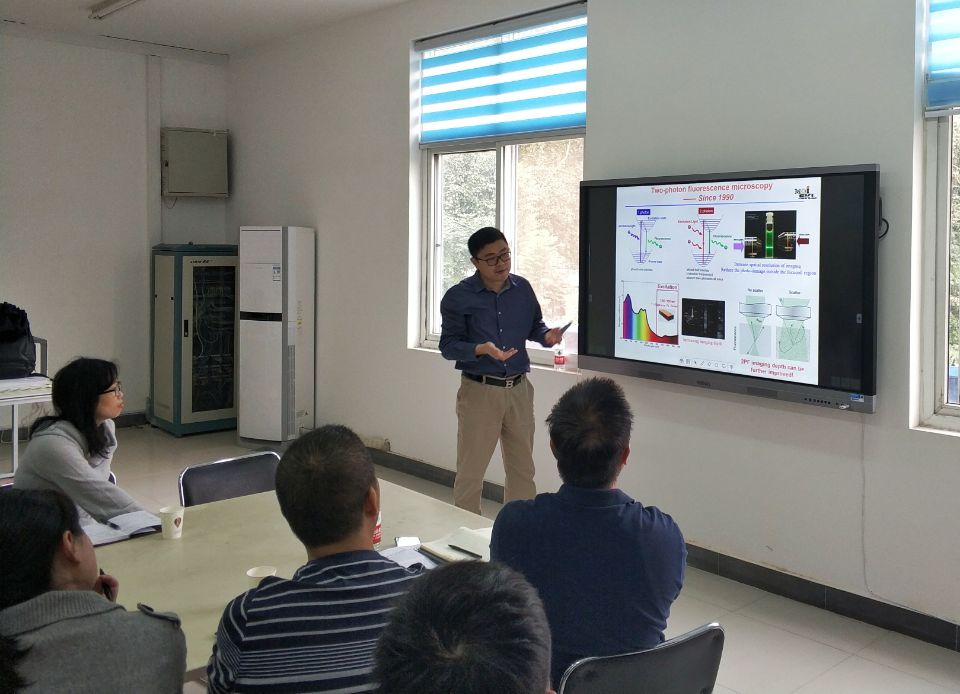 钱教授的报告让与会人员对近红外二区生物组织窗口大深度活体生物成像研究领域有了深层次的认识,为大家的科研工作提供了新思路。副院长胡建东希望能够与钱骏教授开展深入交流和合作,将先进的光学检测技术应用于农业领域。