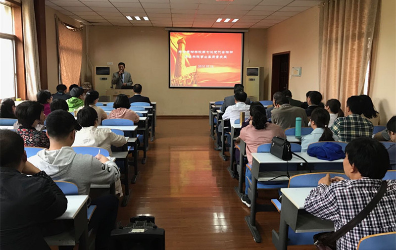 在15号楼410召开“落实校第七次党代会精神,强力推进本科教学质量工程建设”工作会议,学院全体教职工参加会议。会议由院长徐广印主持。
