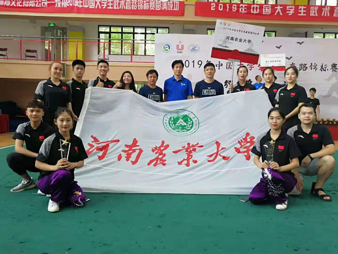 7月18日至23日,由中国大学生体育协会主办、中国大学生体育协会民族传统体育分会协办、华中科技大学承办的“2019年中国大学生武术套路锦标赛”在华中科技大学西区体育馆举行。我校选派了包括4名留学生在内的14名选手参加了此次锦标赛。