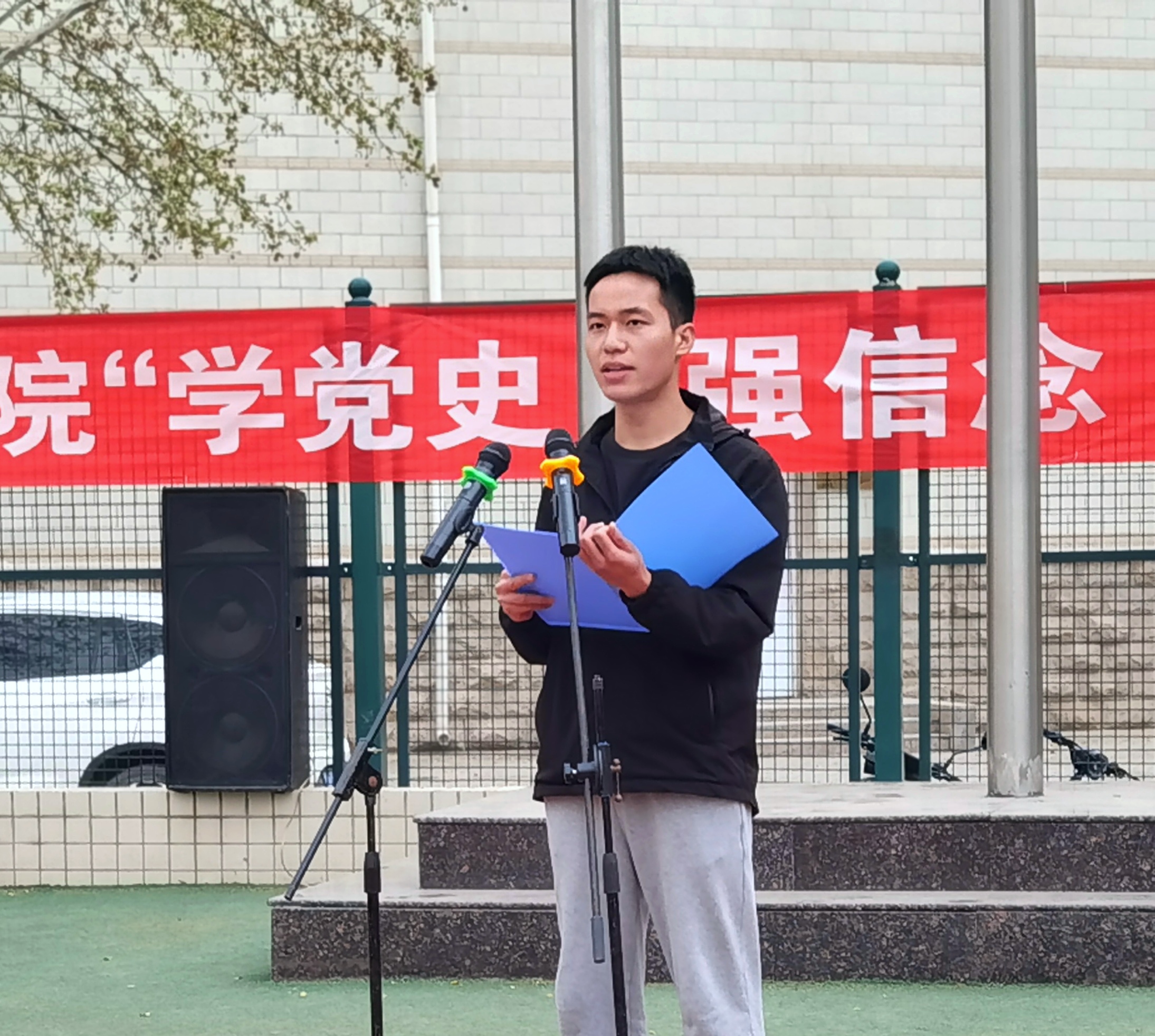 院党委书记李世欣讲话,借建党百年之际,他对全体师生提出三点要求与期望。一要学党史、悟思想、办实事、开新局,要时刻牢记党的理想信念和党的历史经验,增强学习党史的思想自觉和行动自觉,切实做到学史明理、学史增信、学史崇德、学史力行;二要养习惯、学做人、欲成才、先正己,要时常反省方能找准偏差,学习习近平总书记在十九大报告中提出的“不忘初心”,为自己树立一个标杆,学有方向,行有目标;三要怀大志、勇担当、务诚恳、书华章,同学们要踏实诚恳,刻苦学习,争做全面发展的高素质技能型人才,早日成为又红又专的合格建设者和接班人。