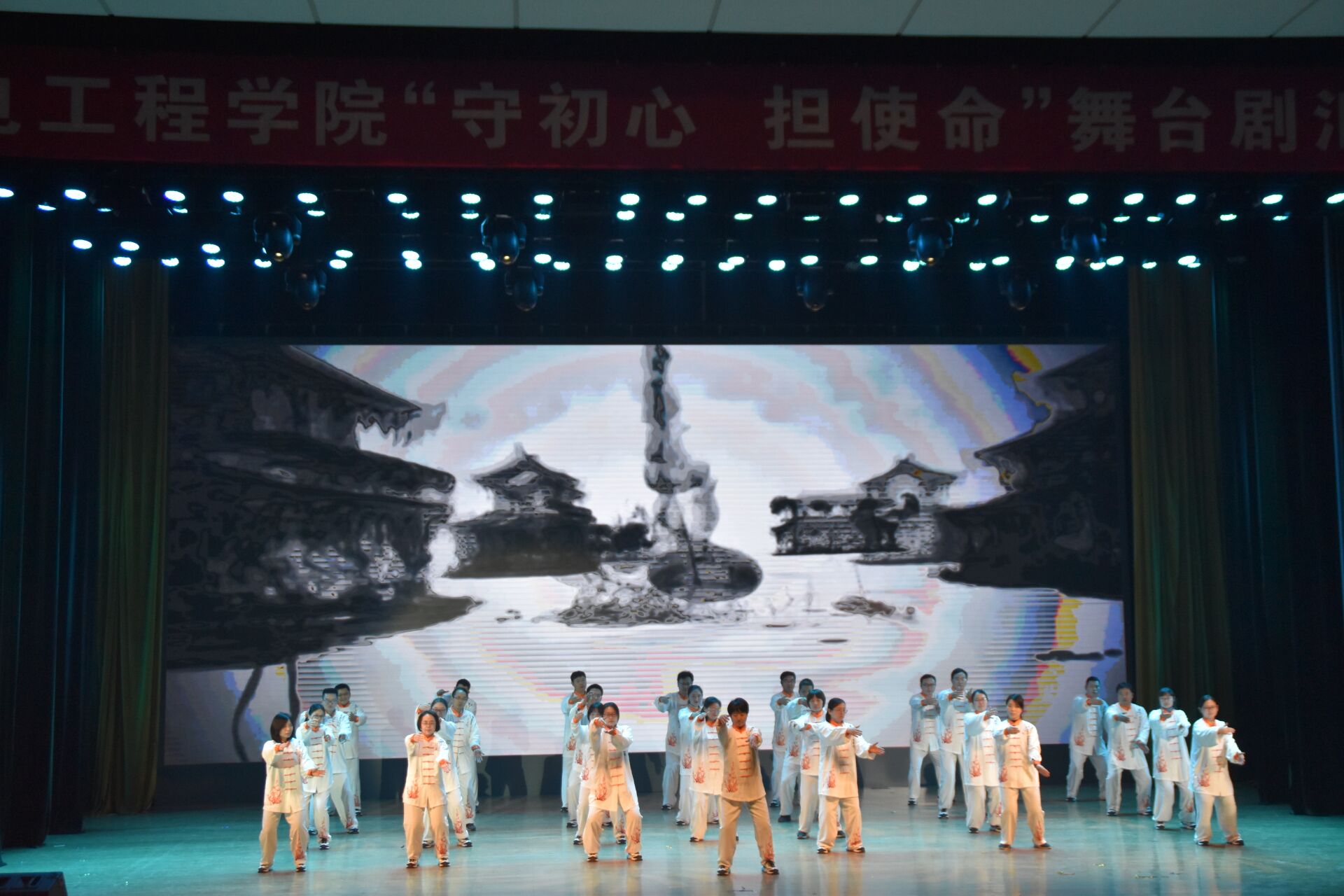 以追溯党史,重温校史,唤醒初心,担当成长为主旨,在大礼堂隆重举办“守初心 担使命”舞台剧汇演暨元旦晚会,院党委书记李世欣、党委副书记刘海涛、学院老师和18、19级本科生观看了此次演出。晚会分为“不忘初心 颂歌华诞”、“牢记使命 百舸争流”和“勇于担当 机电远航”三个篇章,集舞台剧、舞蹈串烧、相声小品、歌曲、朗诵等多种表演形式为一体,为广大师生带来了一场视听盛宴。