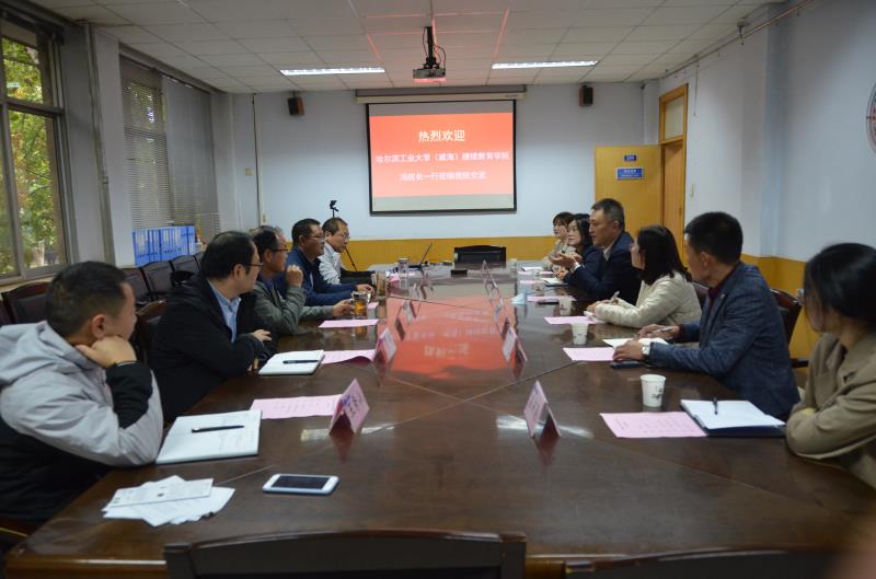 新工科专业建设的关心和支持。胡建军介绍了学院学科建设、本科教学以及专业建设等方面的整体情况,并表示通过此次调研交流将进一步推进学院新工科专业建设和发展。冯英涛介绍了哈尔滨工业大学(威海)继续教育学院的整体情况,并希望双方在新工科建设方面进一步加强交流,在合作中实现共赢。