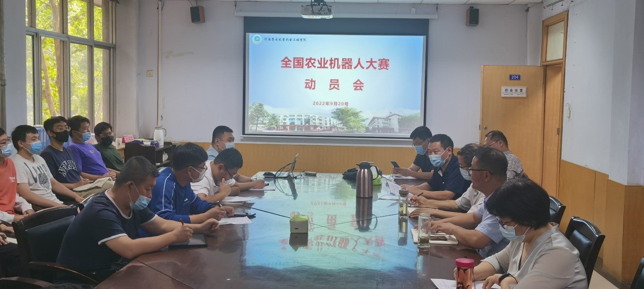 在二楼会议室召开了2022年中国农业机器人大赛动员会。院党委书记李世欣、院长胡建军、团委书记黄笑、各参赛队伍指导老师、参赛队员参加会议。