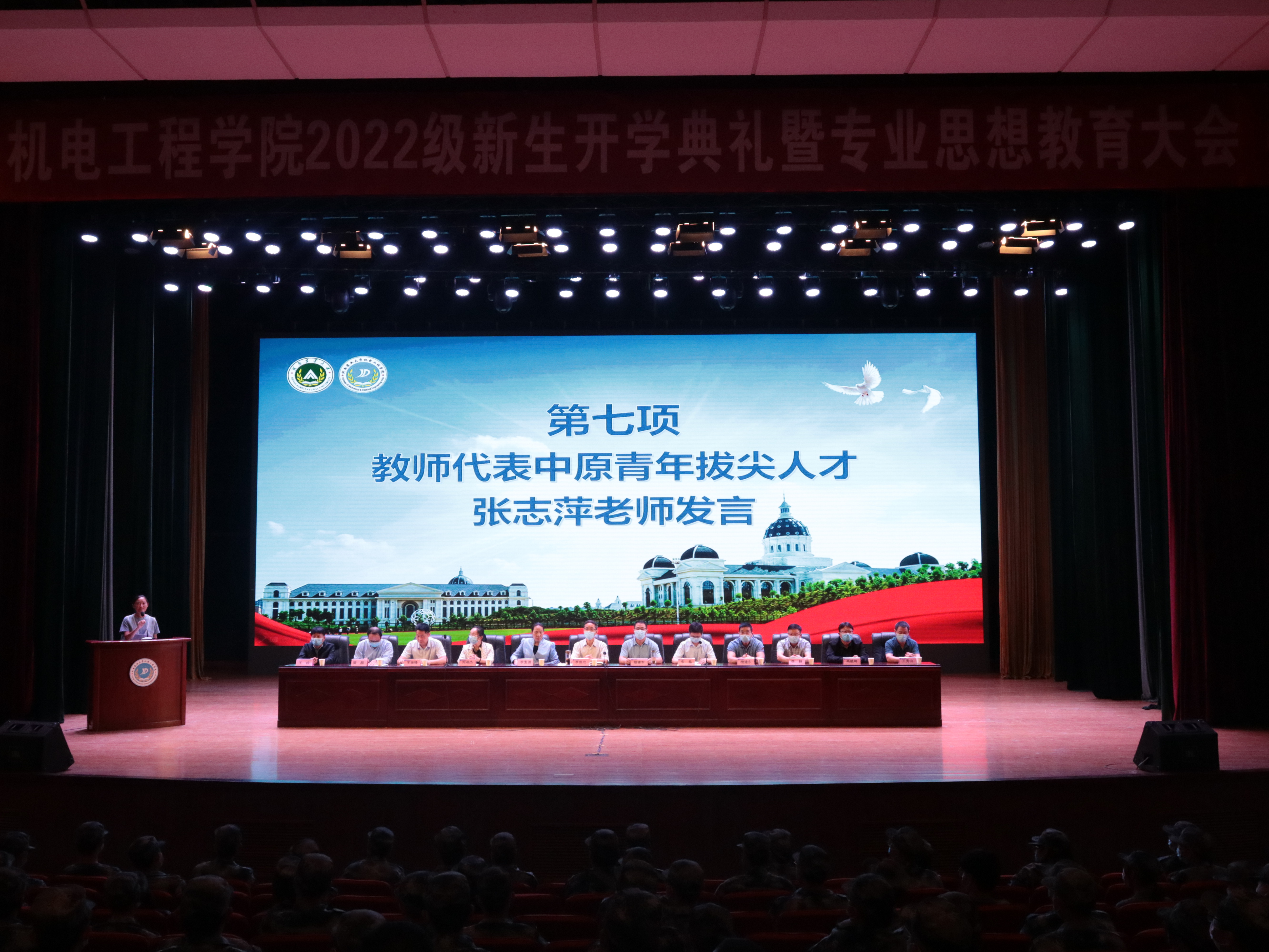 随后,胡建军进行致辞,他首先对新生致以诚挚的问候和衷心的祝福,紧接着,他围绕师资力量、科研成果、办学理念等方面介绍了学院的基本情况,并对全体新生提出了三点希冀,鼓励大家树立远大理想,筑牢思想根基;做到知行合一、严谨务实、将理论化为实践;主动担当、敢于作为,肩负起青年人的使命与责任。最后,他祝福各位新生学业有成、幸福成长,希望同学们能以机电为新起点,锐意进取,向着未来不断进发。