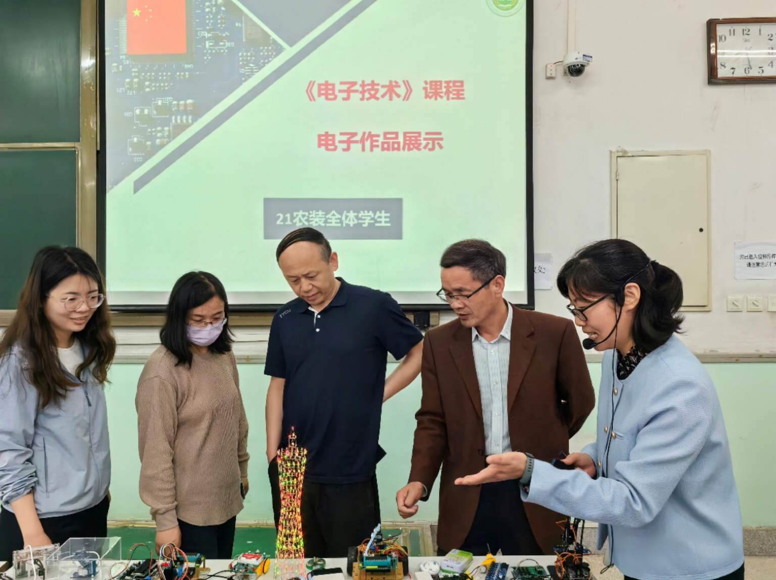 课堂教学观摩活动中,国家级一流本科课程《电子技术》负责人王玲副教授分享了精品课程的建设思路和经验,各小组分别展示了同学们精心制作的各种作品,分享该课程的学习成果,学生们的创新思维和实践动手能力受到大家一致好评,引起积极反响。学生作品的展示也反映了《电子技术》这一国家级一流本科课程的课堂教学中教学任务实施和课程目标达成情况。