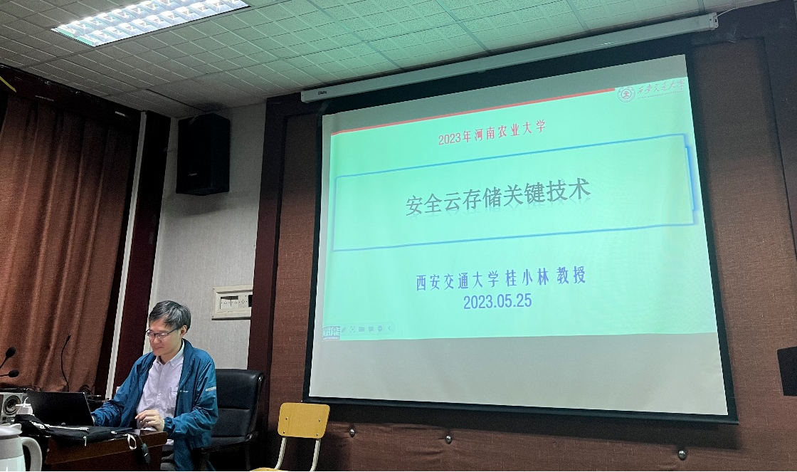 5月25日,西安交通大学国家级教学实践示范中心主任、物联网与信息安全研究所所长、国家一流专业、一流课程负责人、中国工程教育认证专家、陕西省教学名师、桂小林教授应邀来色情av影片 作题为“安全云存储关键技术研究”的学术报告。报告会在色情av影片 学术报告厅举行,胡建东副院长主持报告会,院党委书记李世欣及色情av影片 电子信息工程专业的老师、研究生参加了本次学术报告会。
