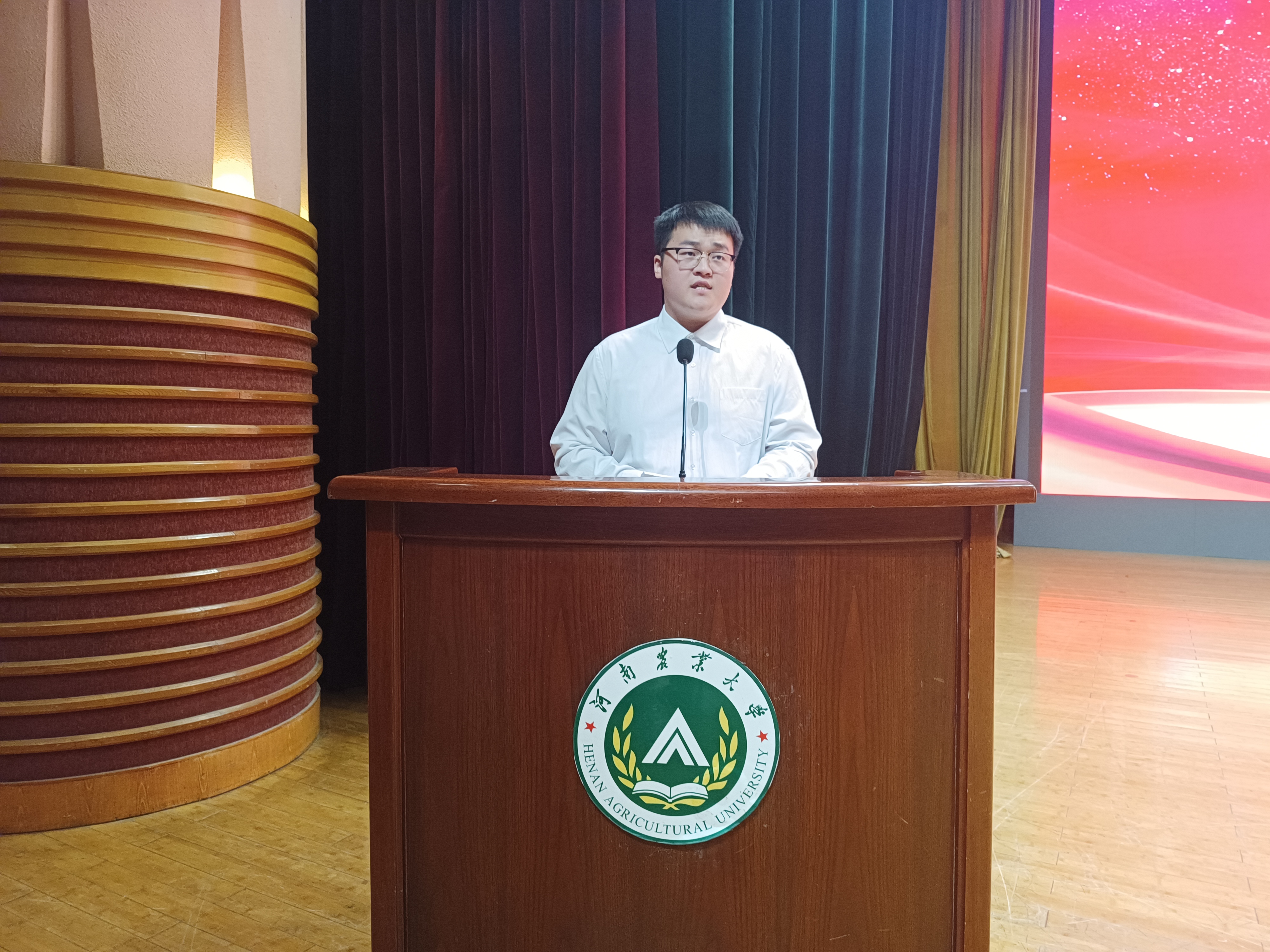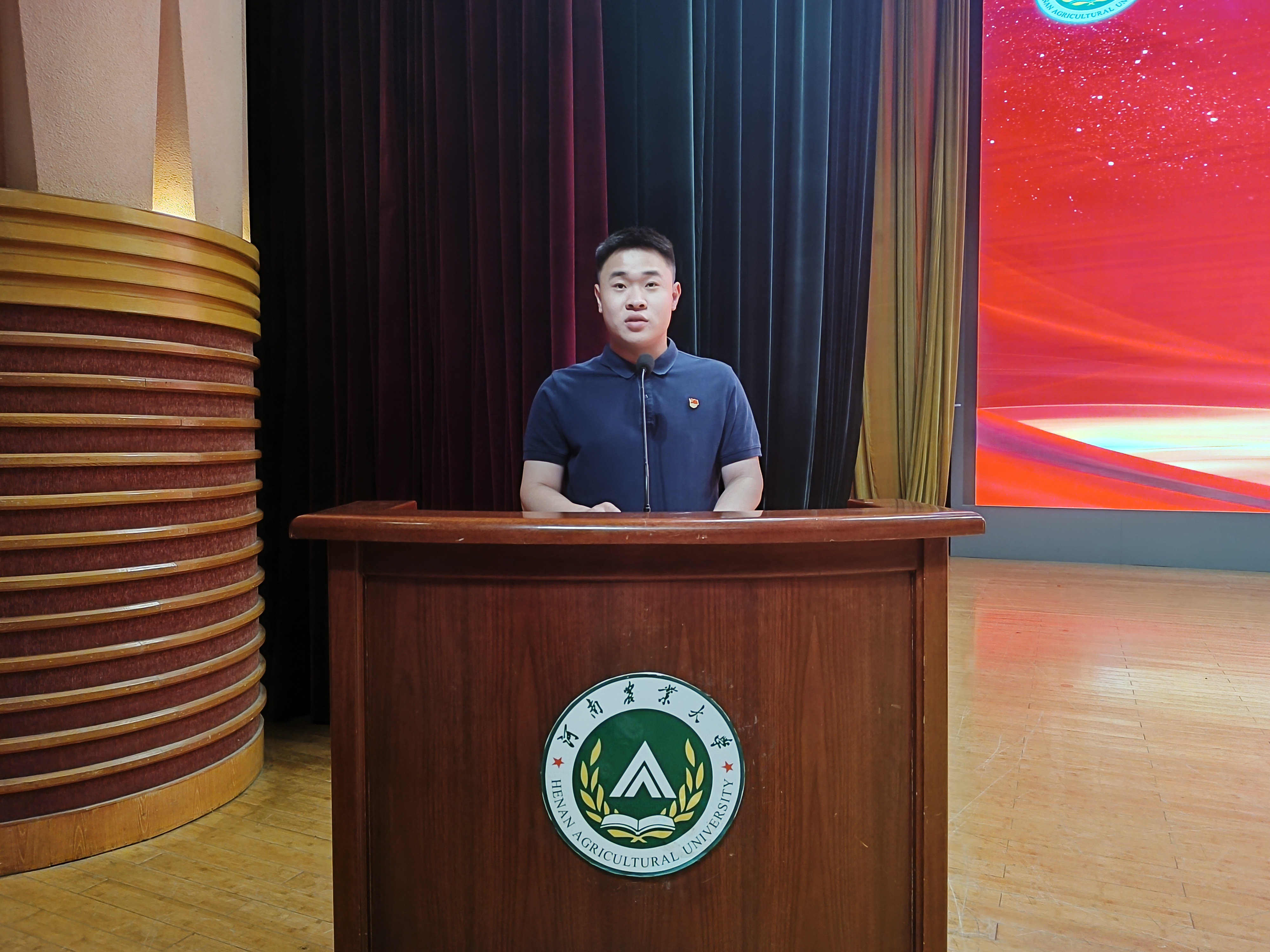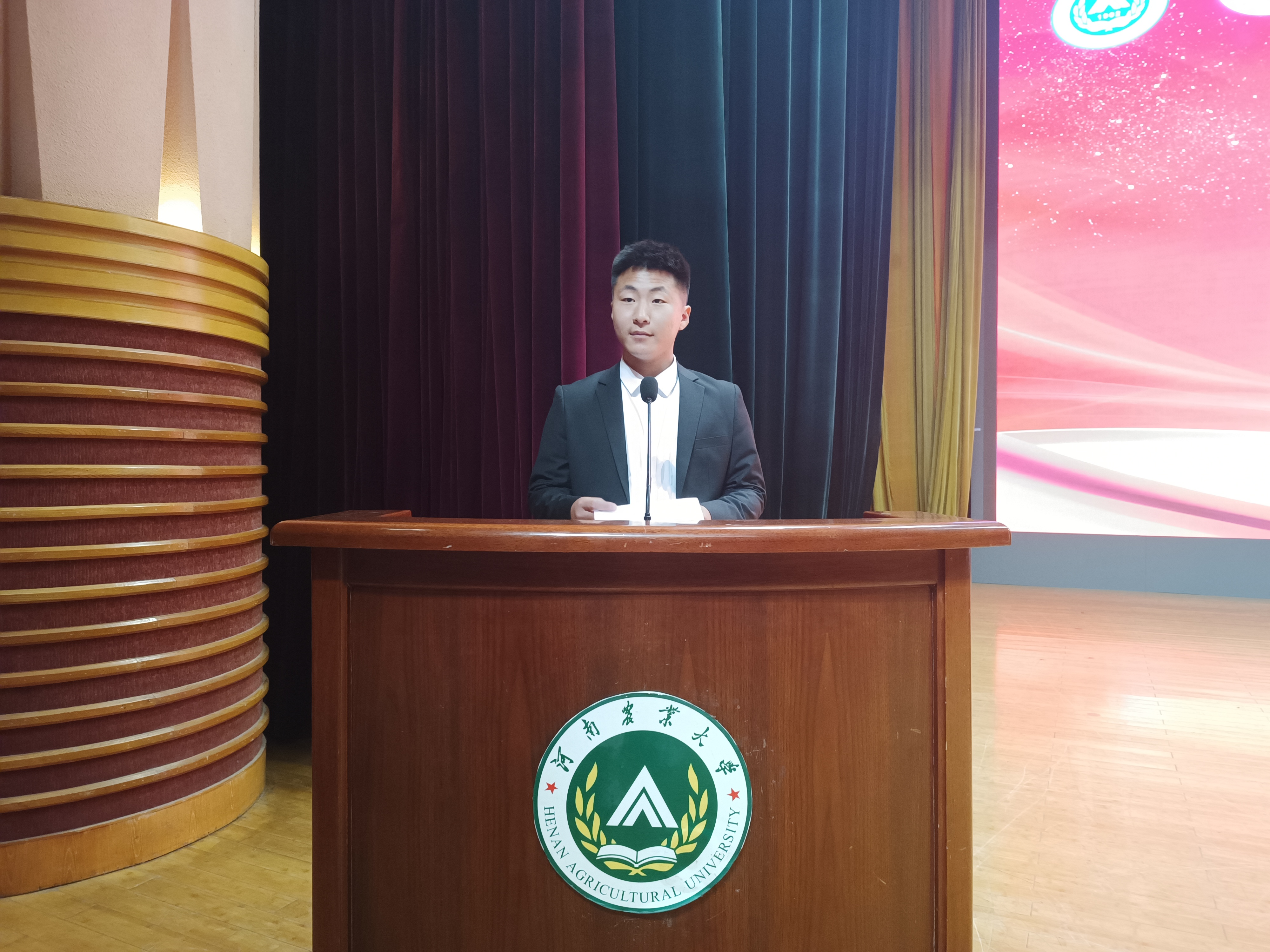 部分受表彰的先进集体与先进个人代表上台发言,他们分别是:就业创业先进集体代表邵龙老师,优秀毕业生代表邓文龙,先进集体代表河南省五四红旗团支部2020级交通运输2班周承博,先进个人代表学生会主席张鹏,优秀运动员代表李帅。