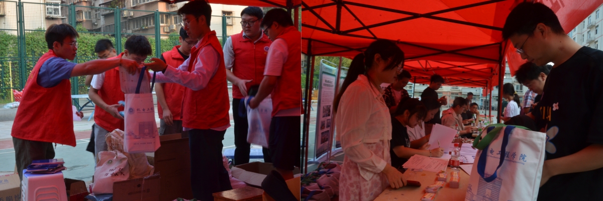 研究生志愿者分装并发放新生入学礼包