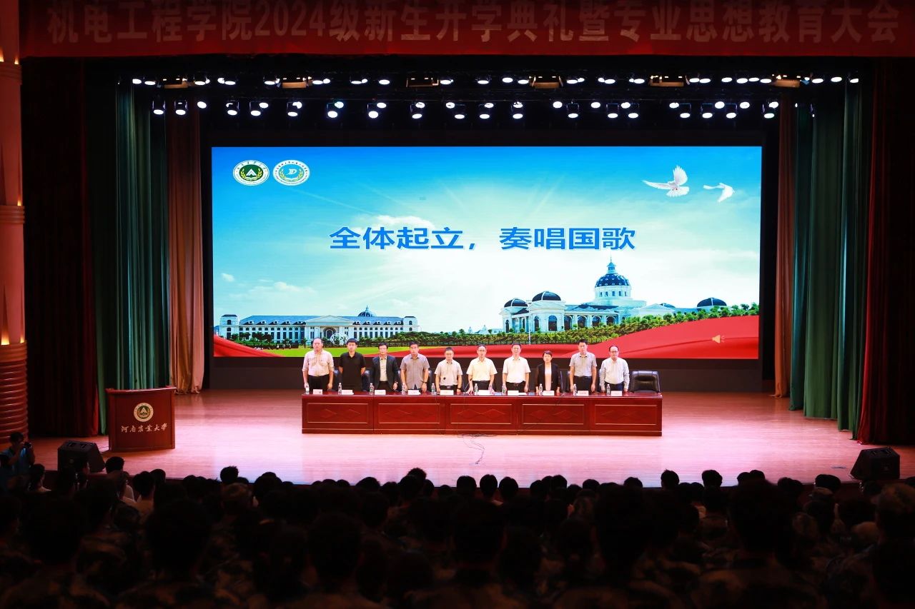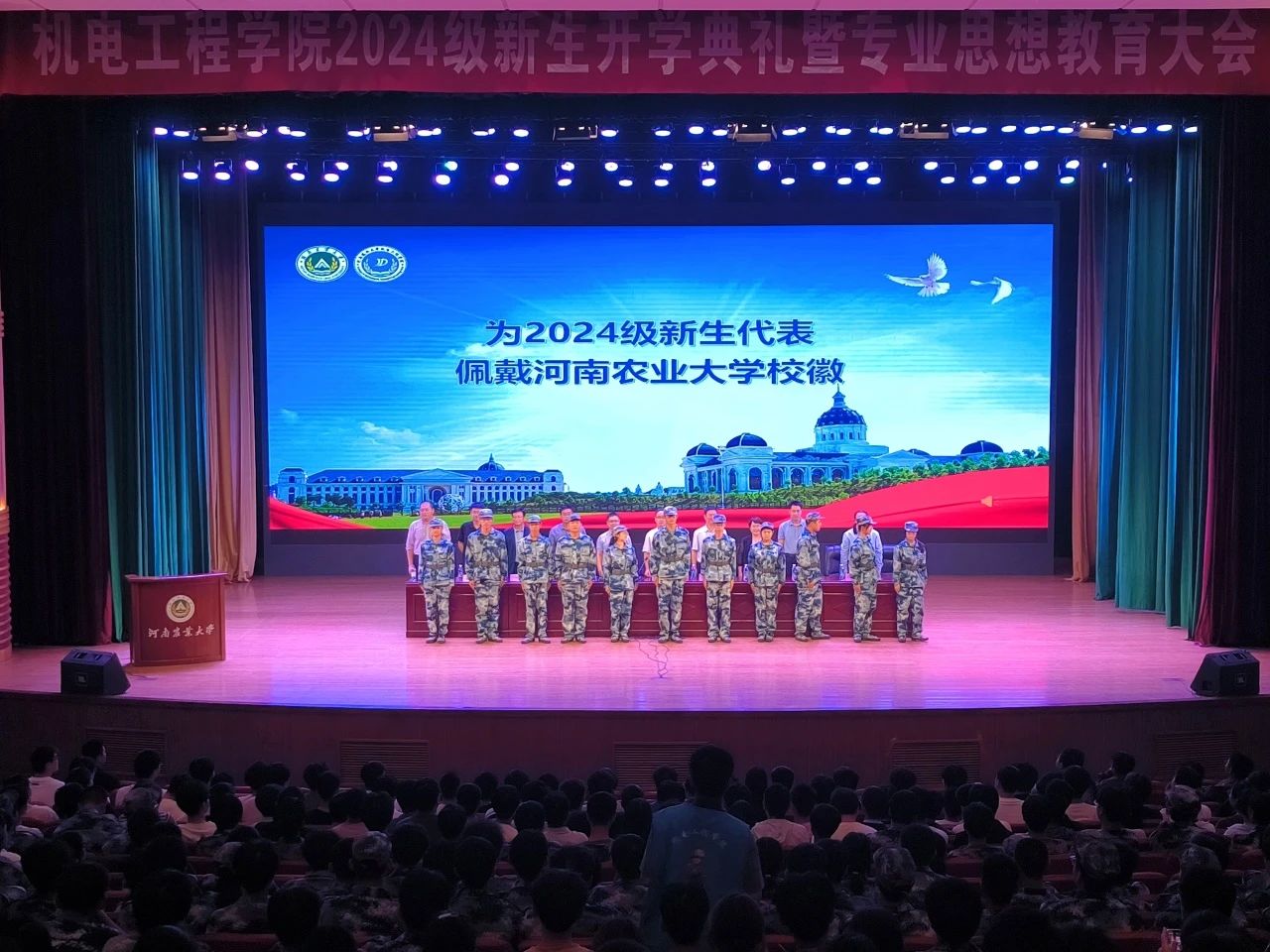 典礼在庄严肃穆的国歌声中拉开帷幕,全体师生起立,共同奏唱中华人民共和国国歌。随后,学院领导老师为新生代表佩戴上河南农业大学的校徽,象征着学院悠久机电工程传统的传承与责任的交接。