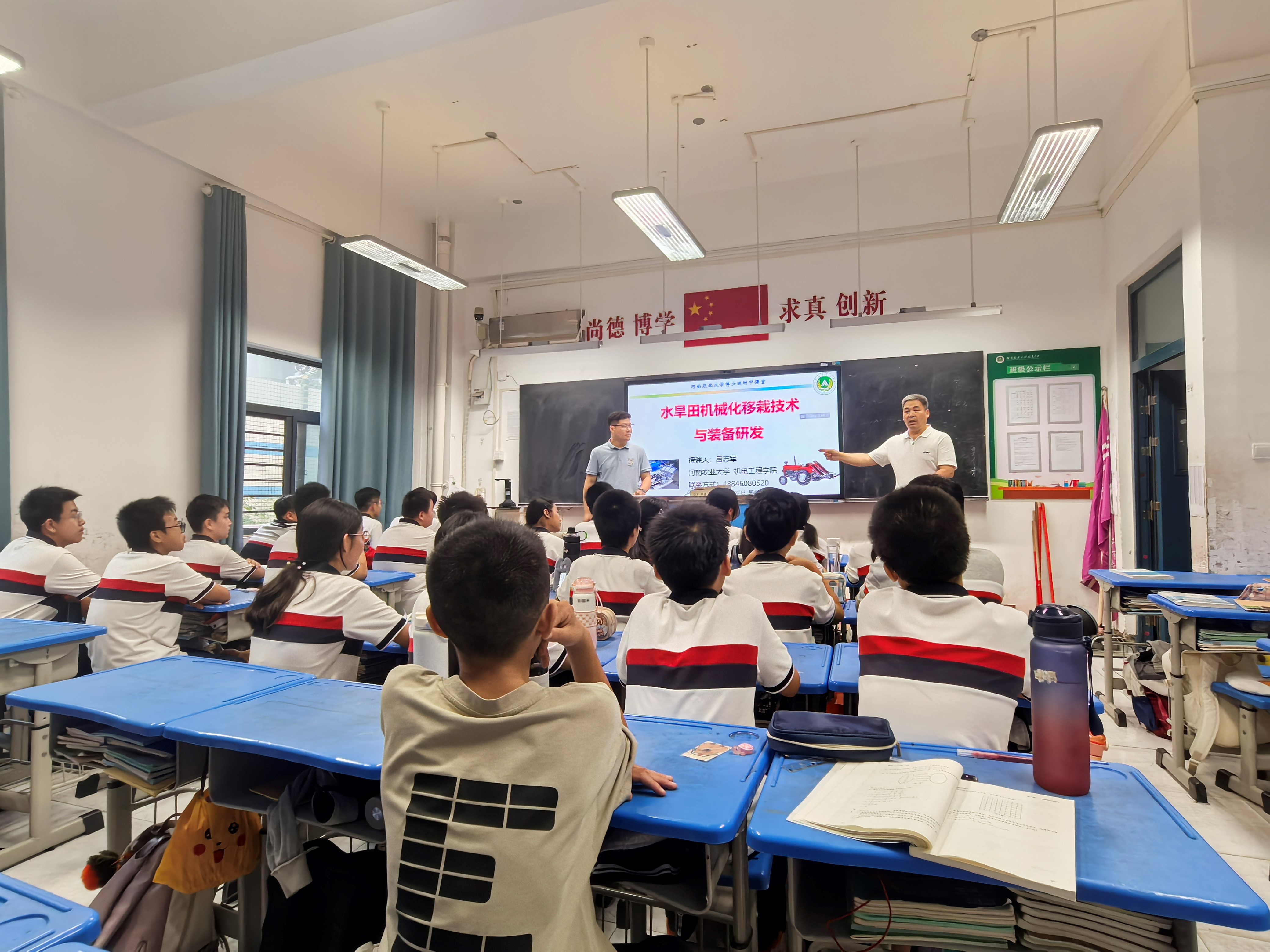 吕志军博士走进河南农业大学附属中学,开展了一场主题为“水旱田机械化移栽技术与装备研发”的科普讲座,讲座由附中副校长张洁云主持。