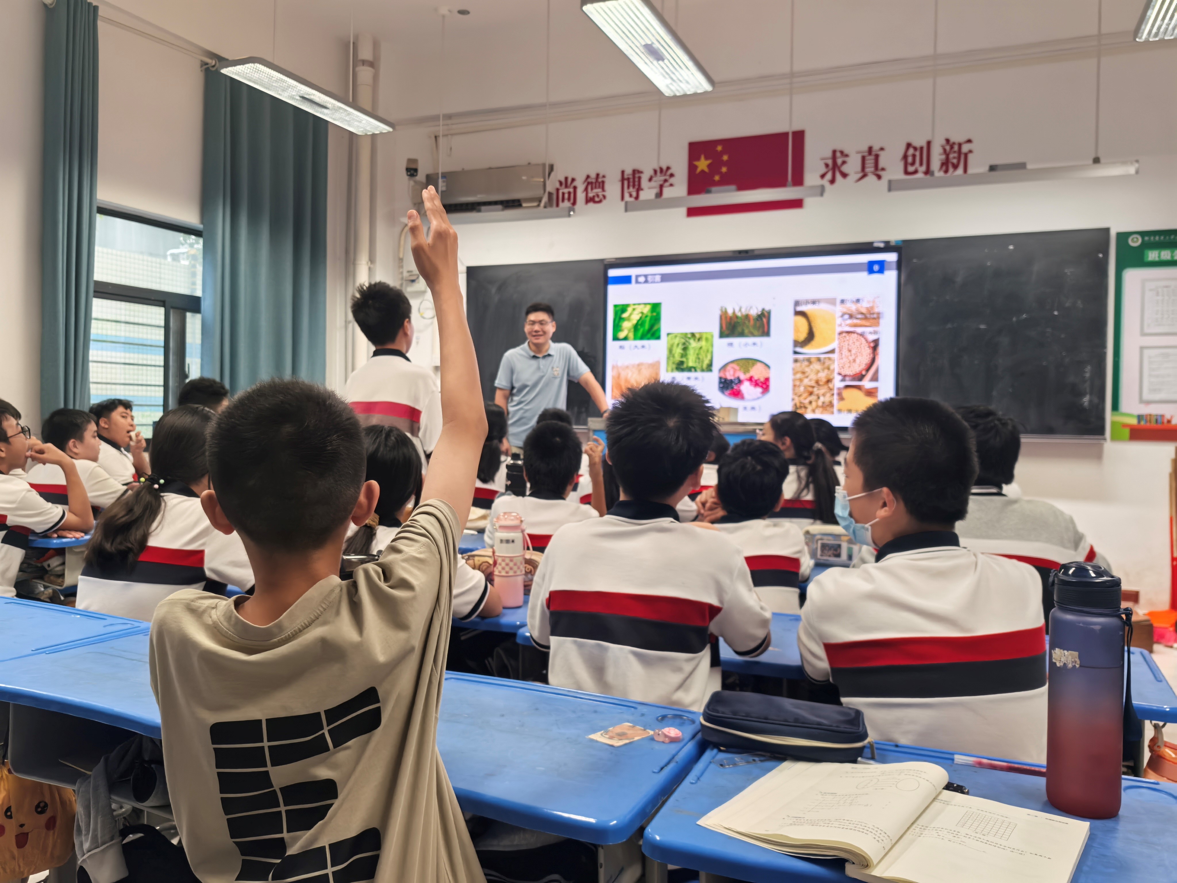 讲座接近尾声时,吕老师播放了向袁隆平院士汇报合作交流的视频。视频开始,同学们自发起立,向袁院士致以崇高的敬意,随后全神贯注地聆听院士的声音。这段视频不仅展现了袁院士的大家风范。此次科普教育活动不仅丰富了同学们的校园文化生活,更在潜移默化中增加了学生的科学兴趣,培养了他们的科学思维与创新能力。