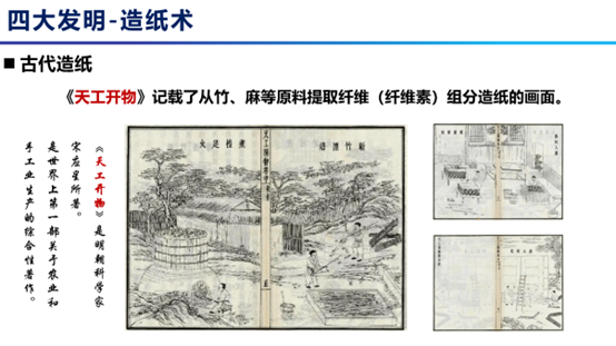 课堂上,翟老师以我国古代四大发明之一的造纸术为引子,分享了《天工开物》一书中记载的从竹子、麻类等原料中提取纤维(纤维素)制作纸张的传统工艺,揭示了以秸秆等为原料的古老造纸术,在我国悠久文化传承与广泛对外交流中所扮演的举足轻重的角色。然后,翟老师让同学们了解何为秸秆,将植物细胞形象地比喻为房屋,细胞壁是坚实的墙体,而纤维素则是支撑的钢筋,巧妙地描绘了秸秆的来源及其独特的构造之美。在全球视野下,翟老师又介绍了“巴黎协定”与“双碳”目标等国际与国内应对环境危机的举措,让学子们深刻体会到秸秆作为一种绿色资源的利用价值和意义。随后,引用“烤鸭三吃”的智慧,结合绿色化学的理念,深入浅出地讲解了秸秆组分的分离工艺,并分享了分离后的纤维素在日常生活乃至高端科技,如导弹制造等领域的广泛应用。