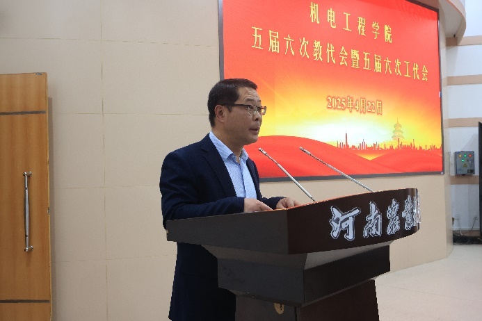 第一次全体会议在雄壮的国歌声拉开了序幕。会议由李世欣主持。宋晶宣读了校工会对学院召开五届六次教代会暨五届六次工代会的批复。胡建军代表学院向大会作《院长工作报告》,在报告中对学院2024年各项工作进行了回顾总结。报告指出,2024年是贯彻落实党的二十大精神的关键之年、是实施“十四五”规划的攻坚之年,也是机遇与挑战并存的一年。全院上下坚定以习近平新时代中国特色社会主义思想为指导,在校党委和校行政的坚强领导下,全体师生筑梦前行,扬帆起航,在创建农业工程一流学科的新征程上谱写新篇章,学院各项事业发展呈现稳中有升的良好态势。