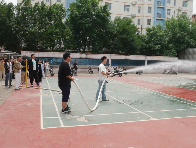 本次系列活动理论结合实践,涵盖安全素养提升、学生宿舍楼火灾疏散演练、消防设备实操培训三大环节。活动期间,校保卫处和后勤处负责老师系统讲解火灾预防、隐患排查及应急处置等专业知识,解读法规。消防疏散演练正式开始,宿舍同学在楼层引导员的指挥下,迅速而有序地按照预定的疏散路线撤离教室。同学们用湿毛巾捂住口鼻,弯腰低姿,快速而冷静地向安全区域——操场集合。整个疏散过程紧张有序,没有发生任何混乱和意外。到达安全区域后,负责人迅速清点人数,确保每一位同学都安全撤离,随后各位同学进行了消防设备实操训练。