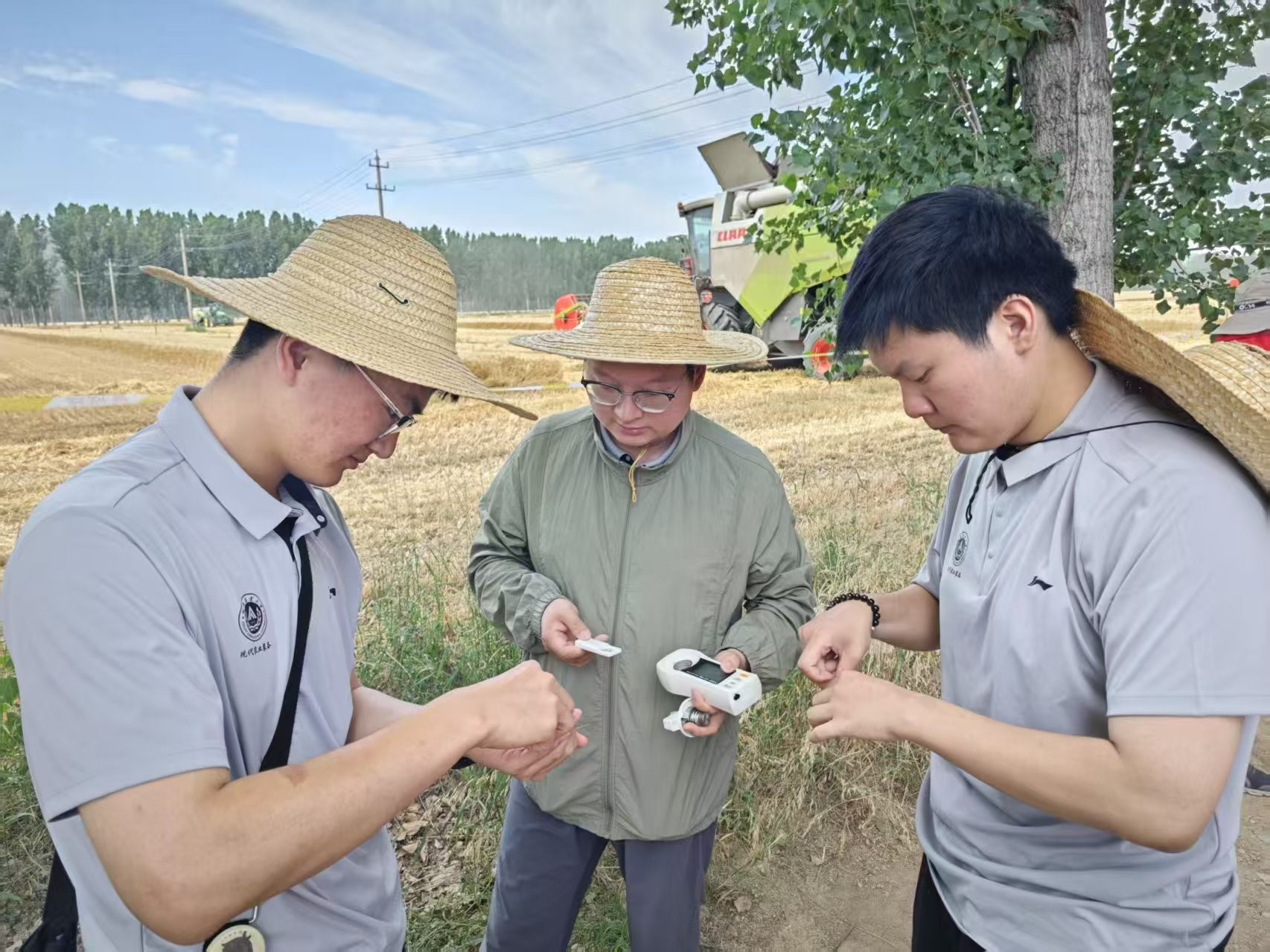 农机团队开展农业机械化生产技术服务,确保夏粮颗粒归仓、秋粮种足种好。麦收以来团队积极承担小麦机收减损技术指导,参与全省机收减损大比武、粮食主产区生产指导及重大农业活动,为粮食安全保驾护航,为“中原粮仓”丰产丰收提供保障。截至6月5日,团队完成全省5个机收减损大比武点和5个夏粮生产大县的生产指导与机收减损检测任务,覆盖全省10个地市、团队教师和研究生参与近80人次,服务对象超2000人。团队河南玉米产业技术体系成员,积极推广夏玉米三角定苗等密植高效单产提升精密播种技术3000多亩,为全省粮食增产增效的实现贡献了力量。