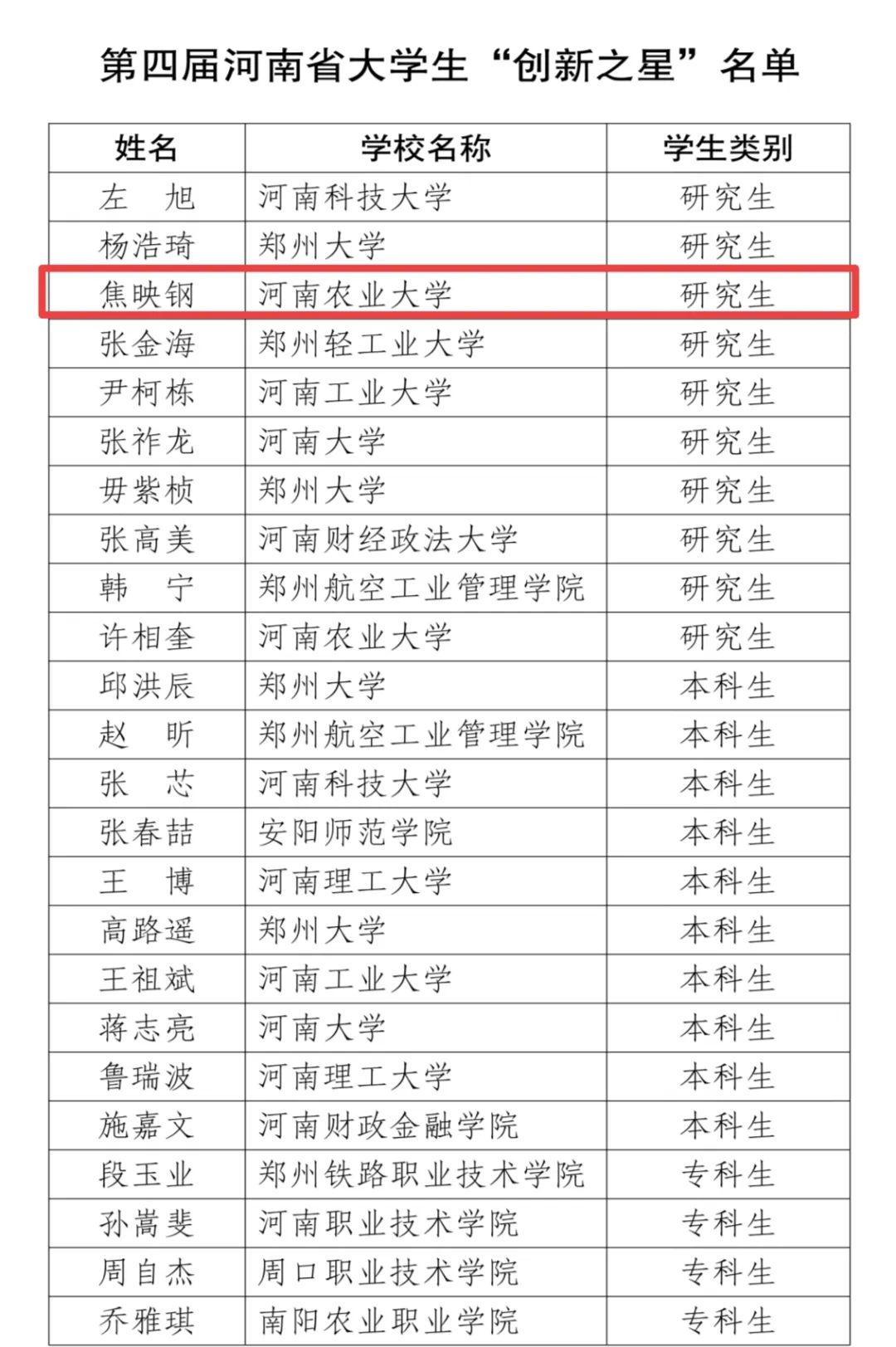 近日,河南省教育厅公布第四届河南省大学生“创新之星”名单,色情av影片