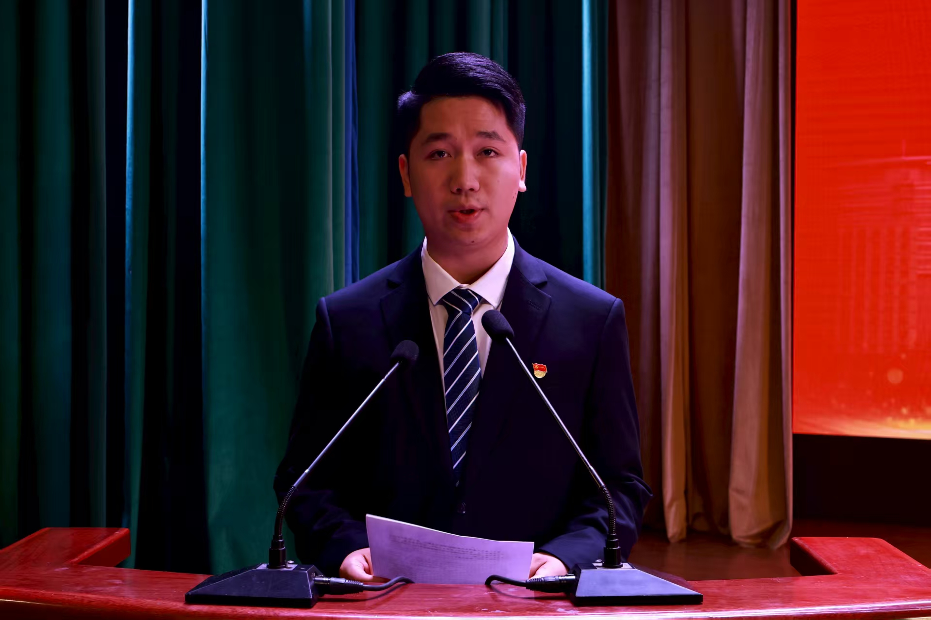 教师代表丁攀上台发言,他鼓励新生“锚定原创”,跳出舒适区;探索“跨界融合”,在交叉学科领域碰撞出科研火花;敢于勇担使命,密切关注产业需求,助力“中国创造”。