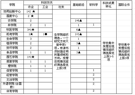 本年度的科技计划项目仍实行限额申报,各学院按照分配指标集中报送,学校不受理限额以外的任何申请。具体分配指标如下: