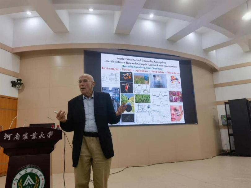 Sune Svanberg 院士以《激光光谱学在环境、生态和农业领域中的应用》为题,向师生分享了他在该领域的最新研究成果和宝贵经验。他详细介绍了激光光谱学在土壤、环境、生态和大气污染中的应用潜力和优势,介绍了他带领的团队在这一领域所取得的重要突破。