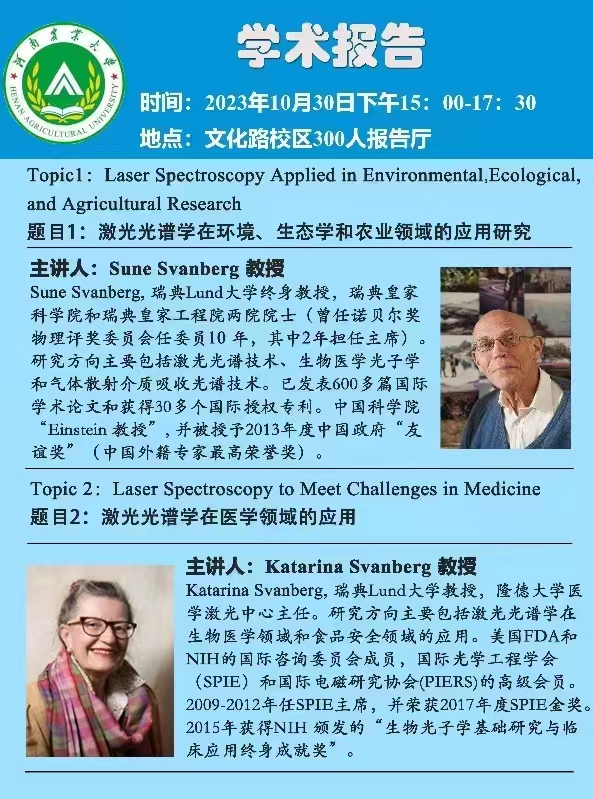 Sune Svanberg院士和Katarina Svanberg教授的精彩演讲和分享,得到了我校师生的热烈欢迎和高度评价。他们认真解答了师生们提出的问题,并就报告会内容与在座师生进行了深入的交流与讨论。本次报告会使师生对激光光谱学应用于农业领域有了更深入的理解,不仅丰富了学术素知识,更重要的是浓厚了学术氛围。本次外国专家报告会由研究生院党委研究生工作部、国际交流合作处、色情av影片