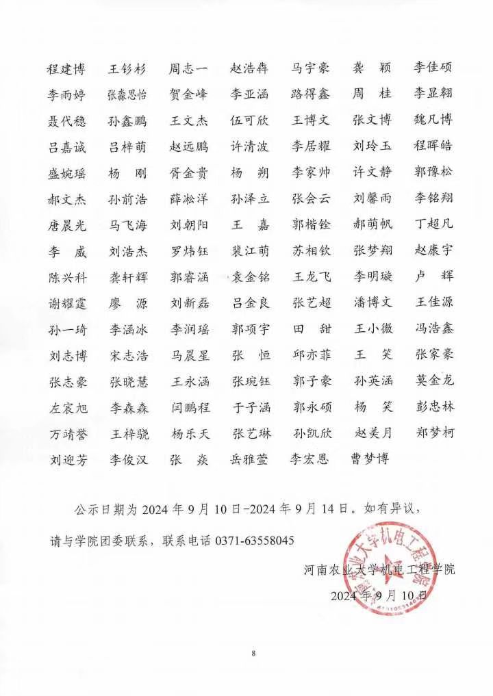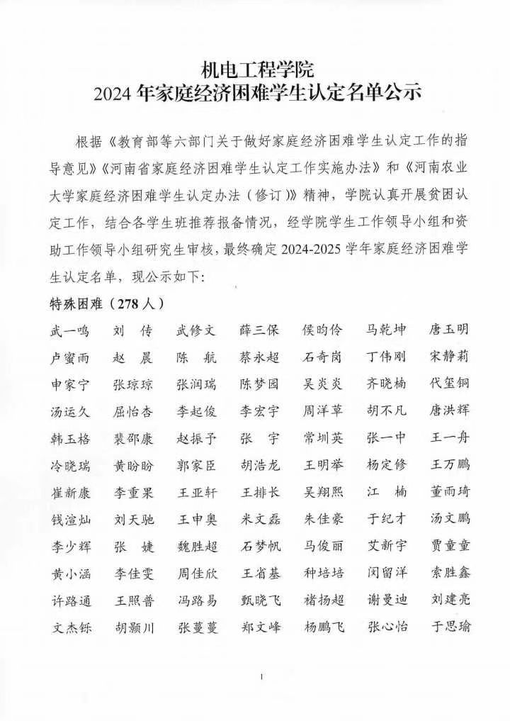 根据《教育部等六部门关于做好家庭经济困难学生认定工作的指导意见》《河南省家庭经济因难学生认定工作实施办法》和《河南农业大学家庭经济困难学生认定办法(修订)》精神,学院认真开展贫困认定工作,结合各学生班推荐报备情况,经学院学生工作领导小组和资助工作领导小组研究生审核,最终确定2024-2025 学年家庭经济困难学生认定名单,现公示如下: