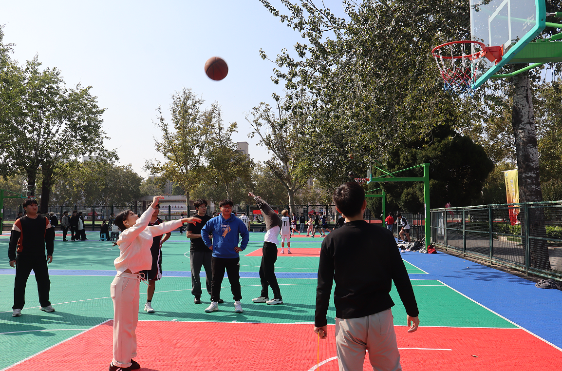 在文化路校区塑胶篮球场举办第一届研究生“迎新杯”趣味三人制篮球赛。