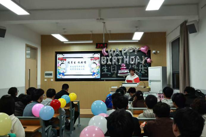 于3号楼218教室为三月过生日的25级新生举办了一场温馨的生日会。学院团委书记李锦、年级辅导员梁凯凯出席活动,与寿星们欢聚一堂,共庆生辰。