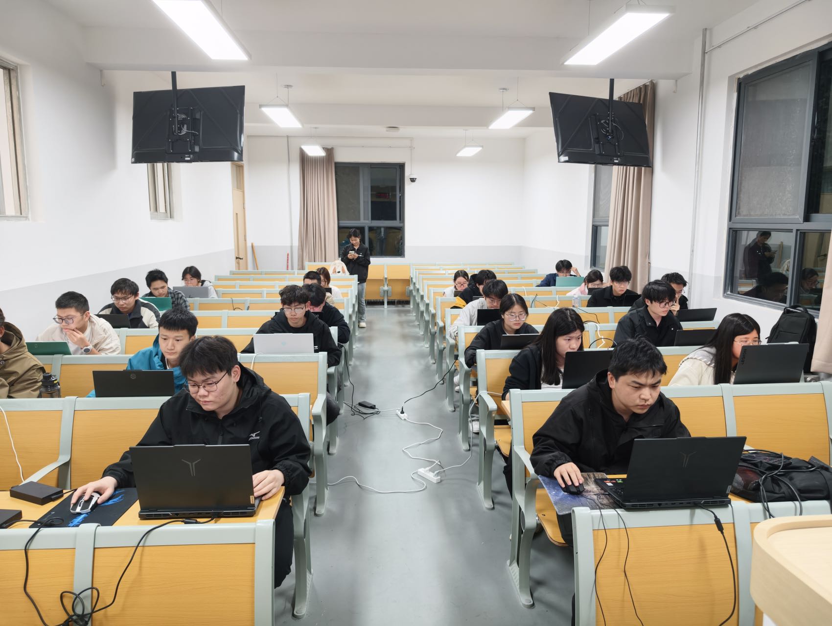 本次比赛严格对标省赛赛事规程,设置计算机二维绘图、三维建模与创新设计等多个赛道,全面考察参赛学生的工程制图基础、软件操作能力与产品信息建模创新能力。比赛现场秩序井然,参赛选手沉着冷静、专注作答;端坐电脑前高效完成三维建模,用SolidWorks构建精密机械模型,充分展现了参赛选手扎实的专业功底与精益求精的工匠精神。监考老师全程严格执行考场纪律,确保赛事公平、公正、公开。