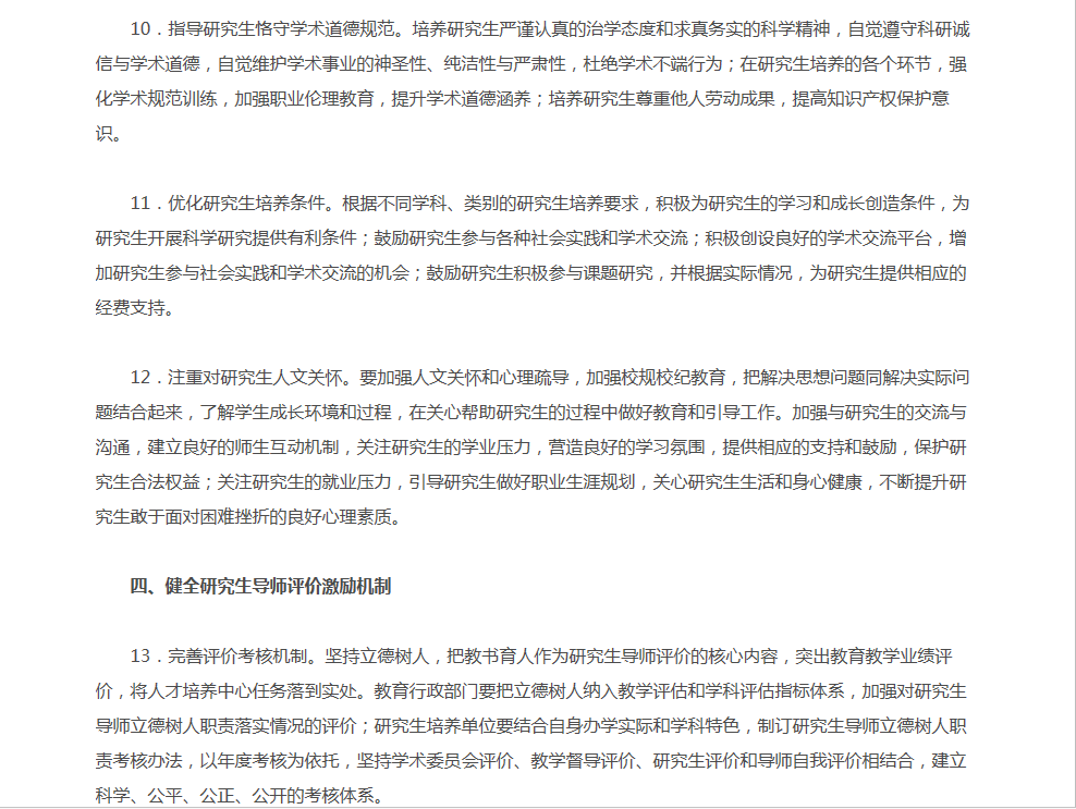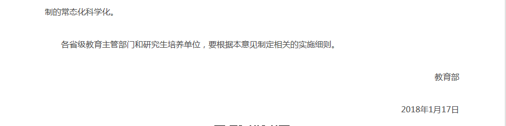 为贯彻全国高校思想政治工作会议精神,努力造就一支有理想信念、道德情操、扎实学识、仁爱之心的研究生导师队伍,全面落实研究生导师立德树人职责,教育部制定了《教育部关于全面落实研究生导师立德树人职责的意见》(教研〔2018〕1号)。请各学科研究生指导教师认真学习文件,并在研究生培养过程中贯彻落实文件精神。