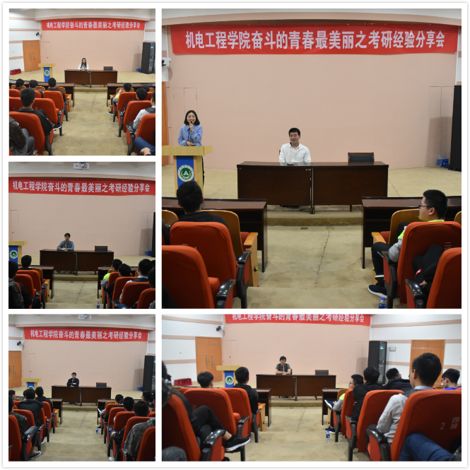 于三百人报告厅举办“奋斗的青春最美丽”之考研经验分享会。分享会由15级学生李想主持,分别由考入东北大学农机系冯昆鹏、考入北京工业大学能源系曹盎然、考入长安大学交通系靳亚格、考入中国地质大学机制系郑新齐、考入北京交通大学电子系李柯各系考研优秀学生代表做了考研经验分享,16级学生参加了分享会。