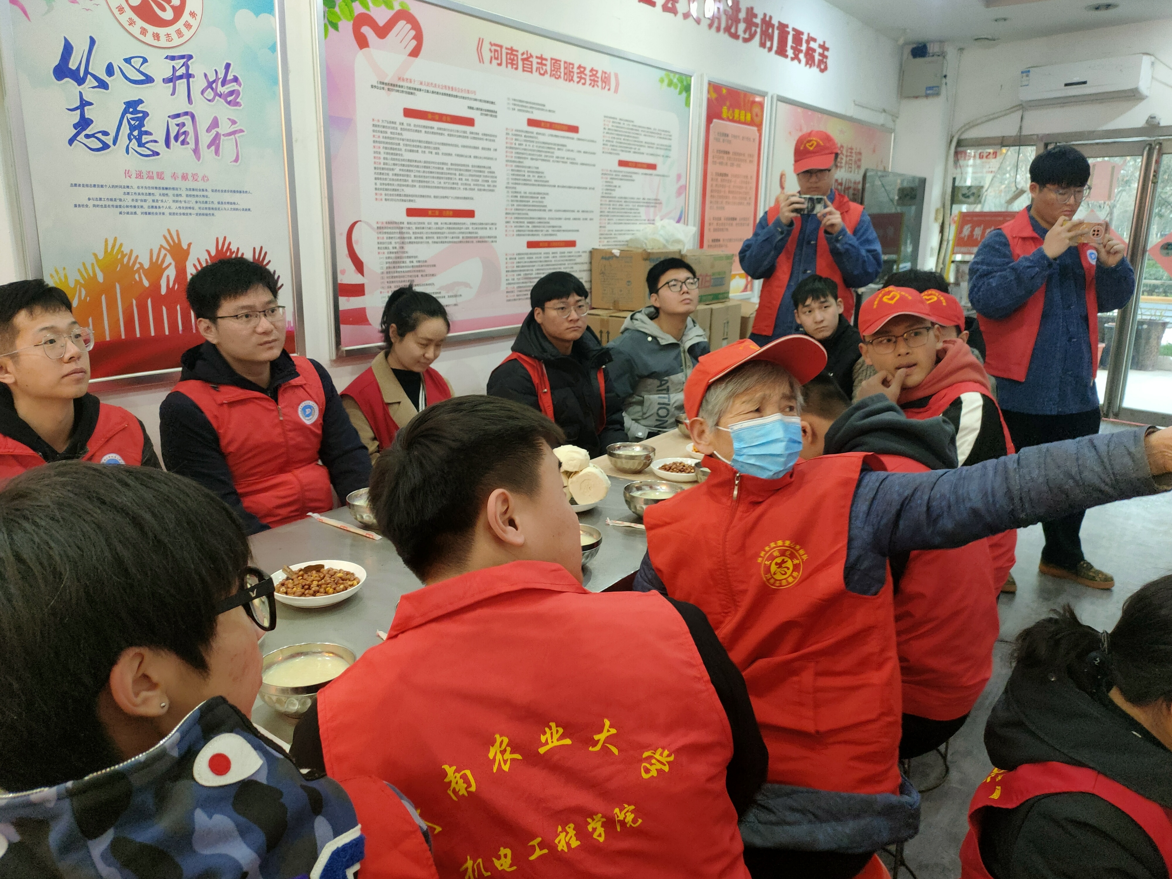 雷锋站志愿服务团在残星的陪伴下奔赴东风路的爱心驿站——免费爱心粥屋。