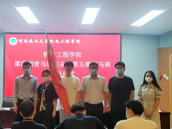 仪式最后,赵宁为第五期青马班授旗,并一同进行合影留念。