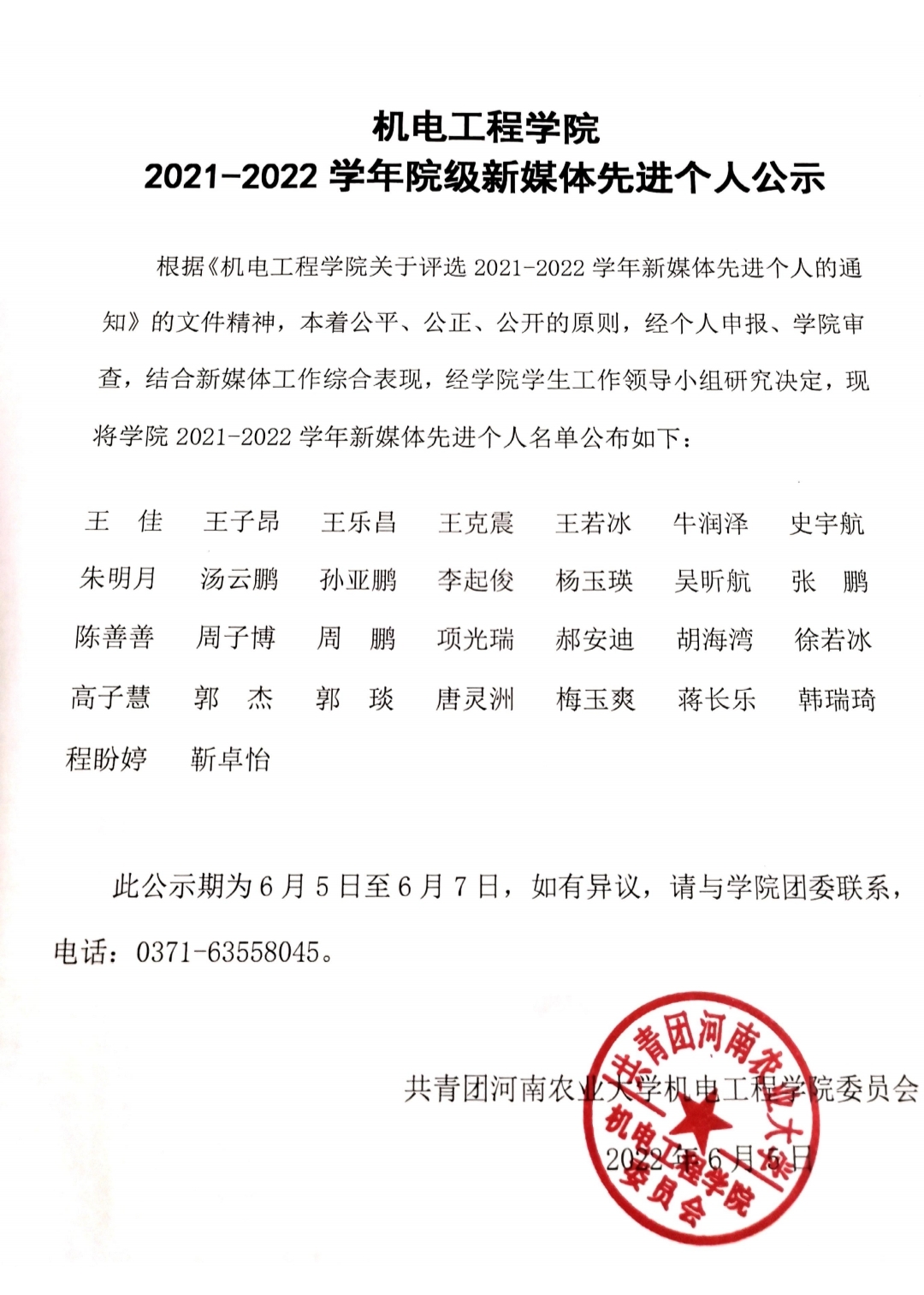 根据《色情av影片 关于评选2021-2022学年新媒体先进个人的通知》的文件精神,本着公平、公正、公开的原则,经个人申报、学院审查,结合新媒体工作综合表现,经学院学生工作领导小组研究决定,现将学院2021-2022学年新媒体先进个人名单公示如下: