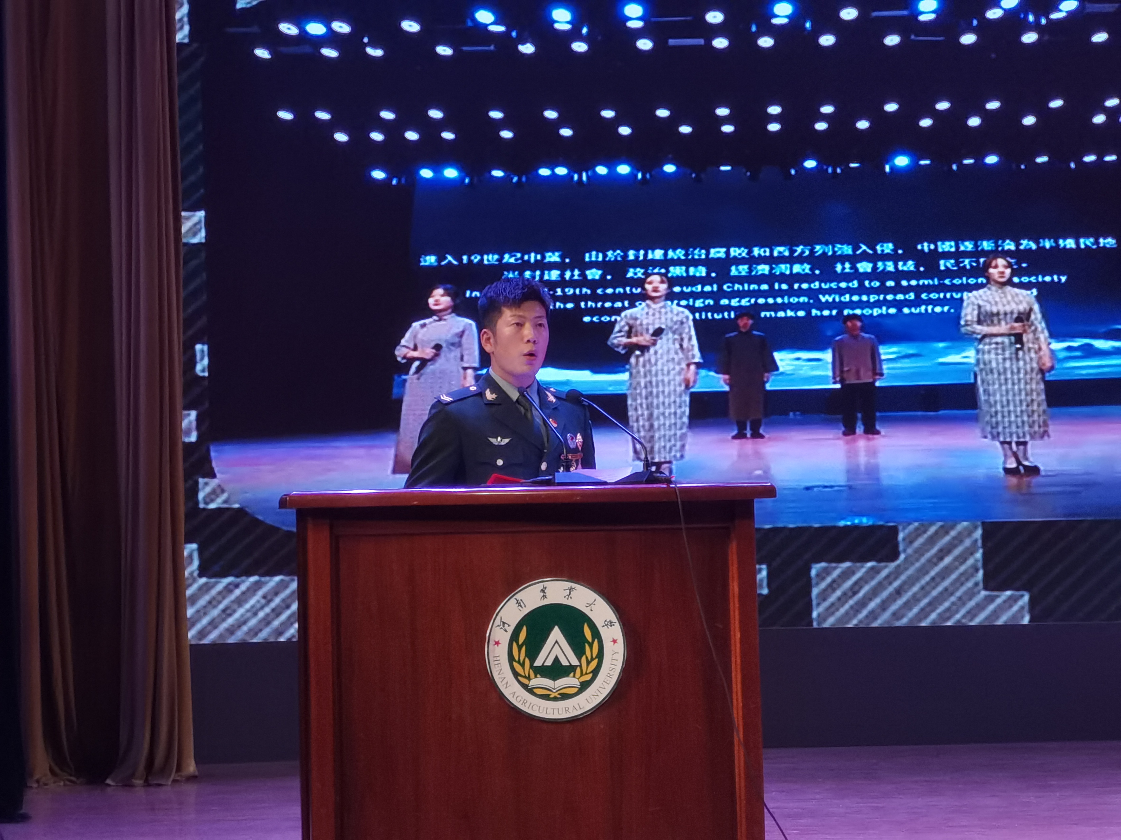 康隆源和风景园林与艺术学院王晨光作为优秀退伍军人代表进行汇报发言,他们结合自己从军经历,分享部队生涯带来的磨练成长,带领大家领略到了军旅生活中多姿多彩的一面,鼓励全体同学要成为一名爱国、励志、求真、力行的新时代好青年。