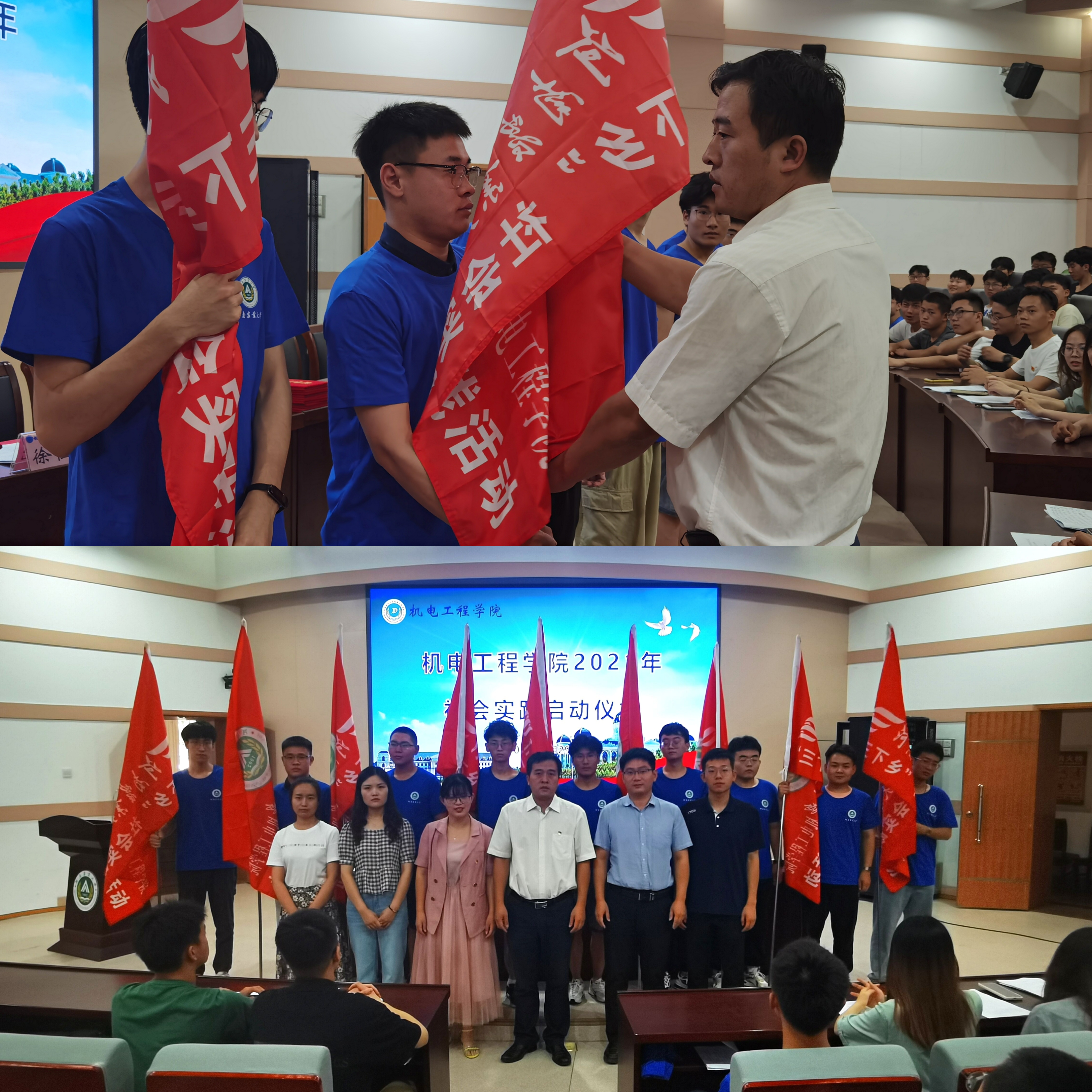 部分社会实践团队代表授旗并合影留念。