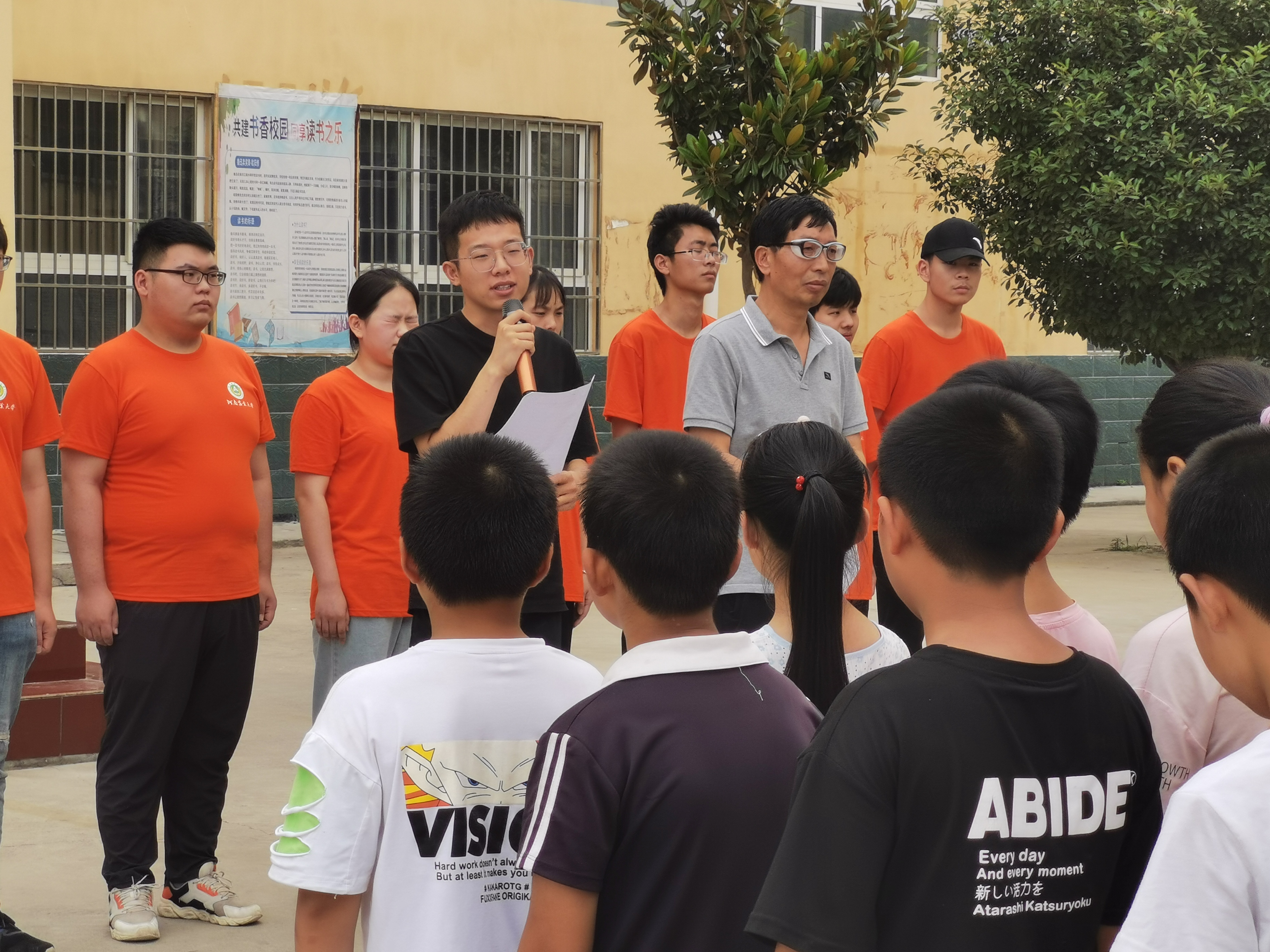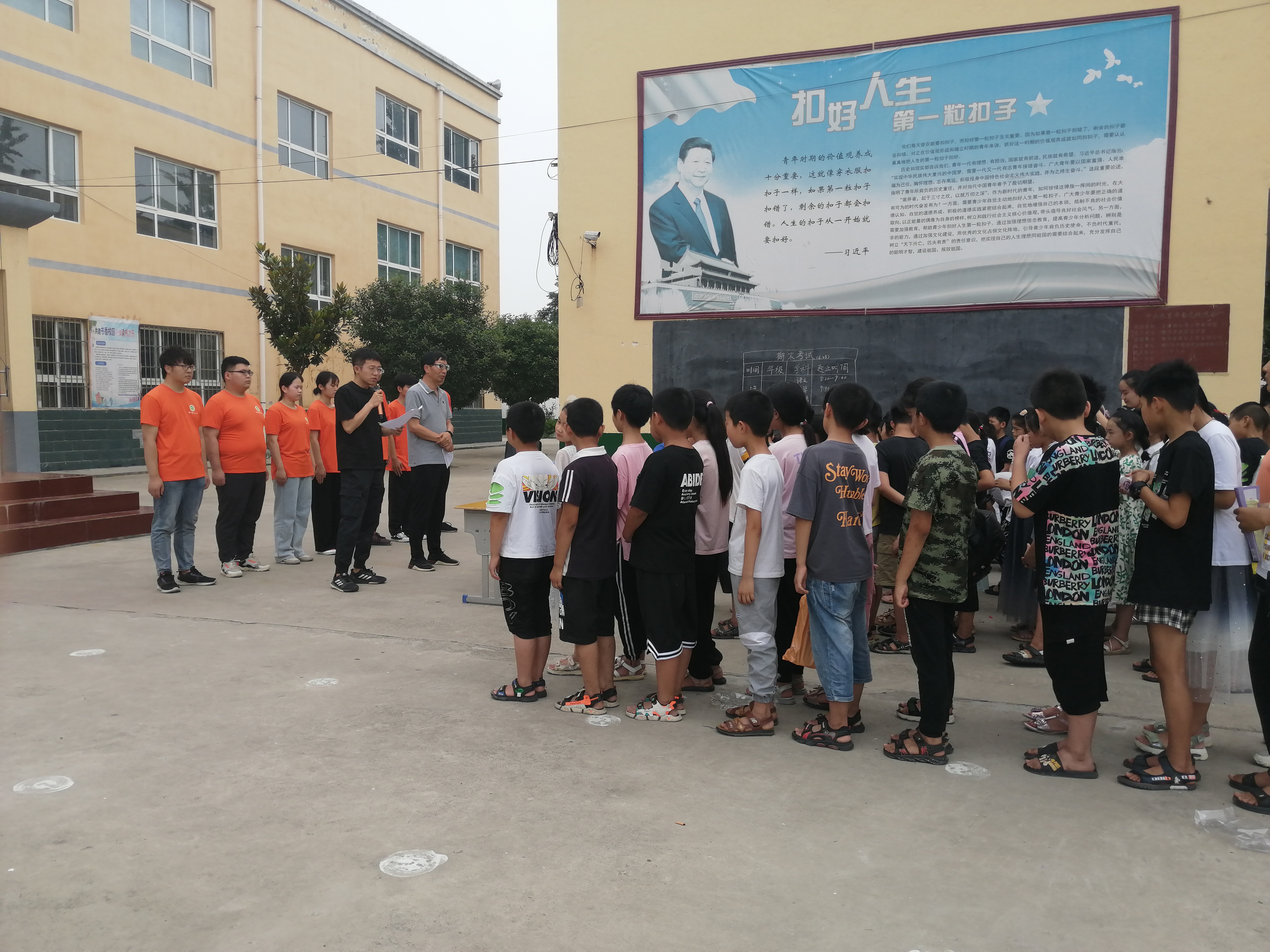 于漯河市舞阳县孟寨镇孙李小学举行暑期支教启动仪式,院辅导员徐佳亮、王晓楠,雷锋站漯河支教团队全体成员以及孙李小学全体师生参加了本次启动仪式。