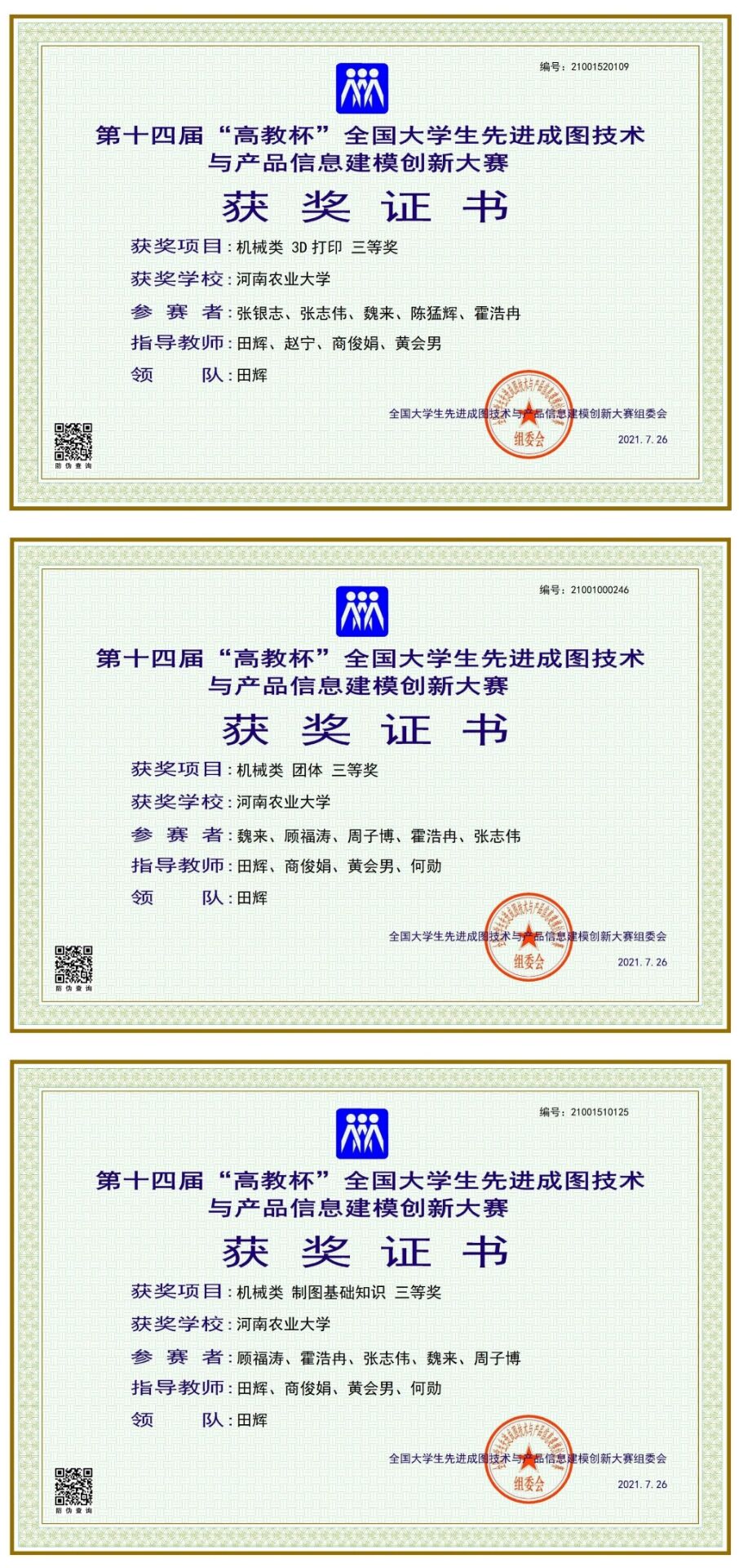 在学院领导的大力支持和帮助下,历经一轮校赛、一轮省赛的严格逐级选拔,最终魏来等9位同学获得省级推荐参加国赛资格。同时,色情av影片 图学田辉、商俊娟、黄会男等指导教师在赛前一个月就开始为参赛队员进行专业知识培训,实验中心李祥付老师为参赛队员提供训练场地,为大赛做好了充分准备。经过激烈比拼,色情av影片 魏来、顾福涛、周子博、霍浩冉、张志伟、张银志、张爱迪、陈猛辉、刘轩志等同学斩获机械类团体三等奖、机械基础知识三等奖、机械类3D打印三等奖的好成绩,个人全能三等奖6项,创造了色情av影片 在轻量化设计与3D打印新增环节的重大突破。本次大赛充分展示了色情av影片 师生不畏困难、敢于拼搏、不断创新的精神,展现了色情av影片 图学类课程改革的优秀教学成果,进一步提高了我校的知名度和影响力。