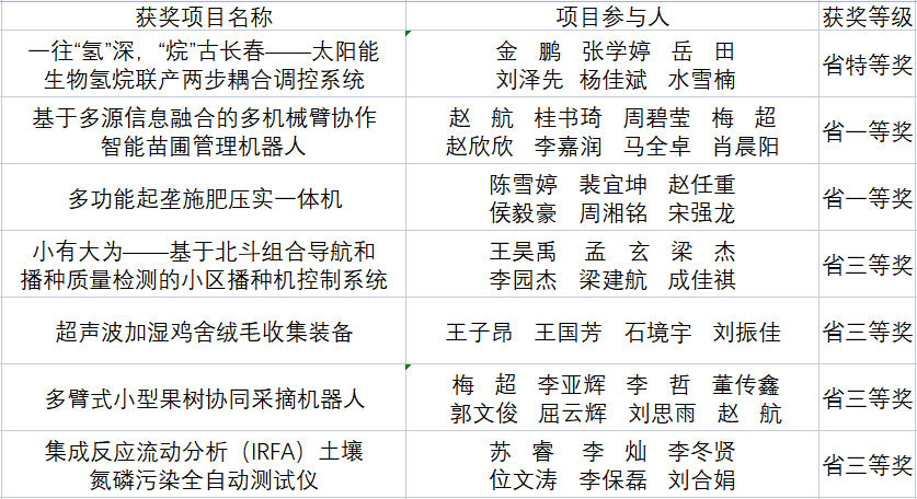 其中,色情av影片 参赛作品《一往“氢”深,“烷”古长春——太阳能生物氢烷联产两步耦合调控系统》获评特等奖,《基于多源信息融合的多机械臂协作智能苗圃管理机器人》和《多功能起垄施肥压实一体机》获评一等奖,《小有大为——基于北斗组合导航和播种质量检测的小区播种机控制系统》等四项作品获评三等奖。