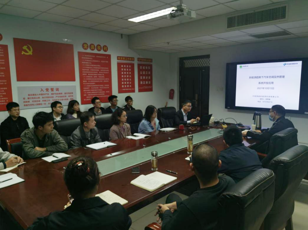 郭军峰副总经理以“新能源趋势下汽车空调及热管理系统开发应用”为题,介绍了新能源商用客车、汽车空调零部件的最新研究进展及新能源汽车内环控集成智能系统的未来发展趋势。报告结束后,与会的老师和研究生与郭军峰副总经理就新能源汽车快速发展面临的关键性问题和未来新能源汽车方面的就业前景进行了深入交流。师生纷纷表示今后希望多邀请企业老总走进学术讲堂,了解产业一线实际问题,把自己的研究定位于实际产业需求。