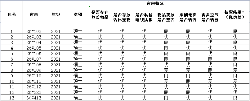 11月30日宿舍安全卫生检查结果